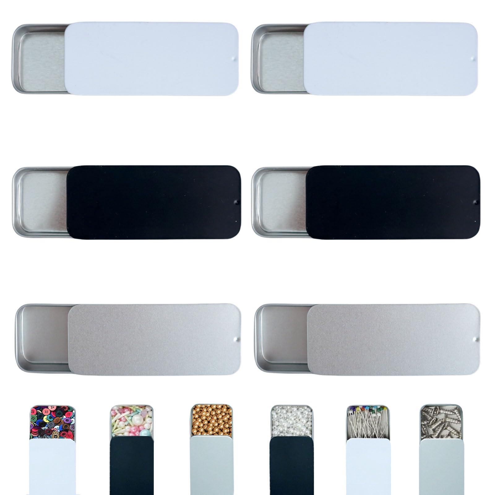 6 Stück Rostfrei Metalldöschen, Klein Mini Metalldosen, Metall Boxen, Kleinen Blechdosen Mit 6 Schwammpads, Schachtel Metall Vorratsdosen Für Süßigkeiten,Schmuck,Basteln,Nagelkunst(9.4*6.1*2 Cm