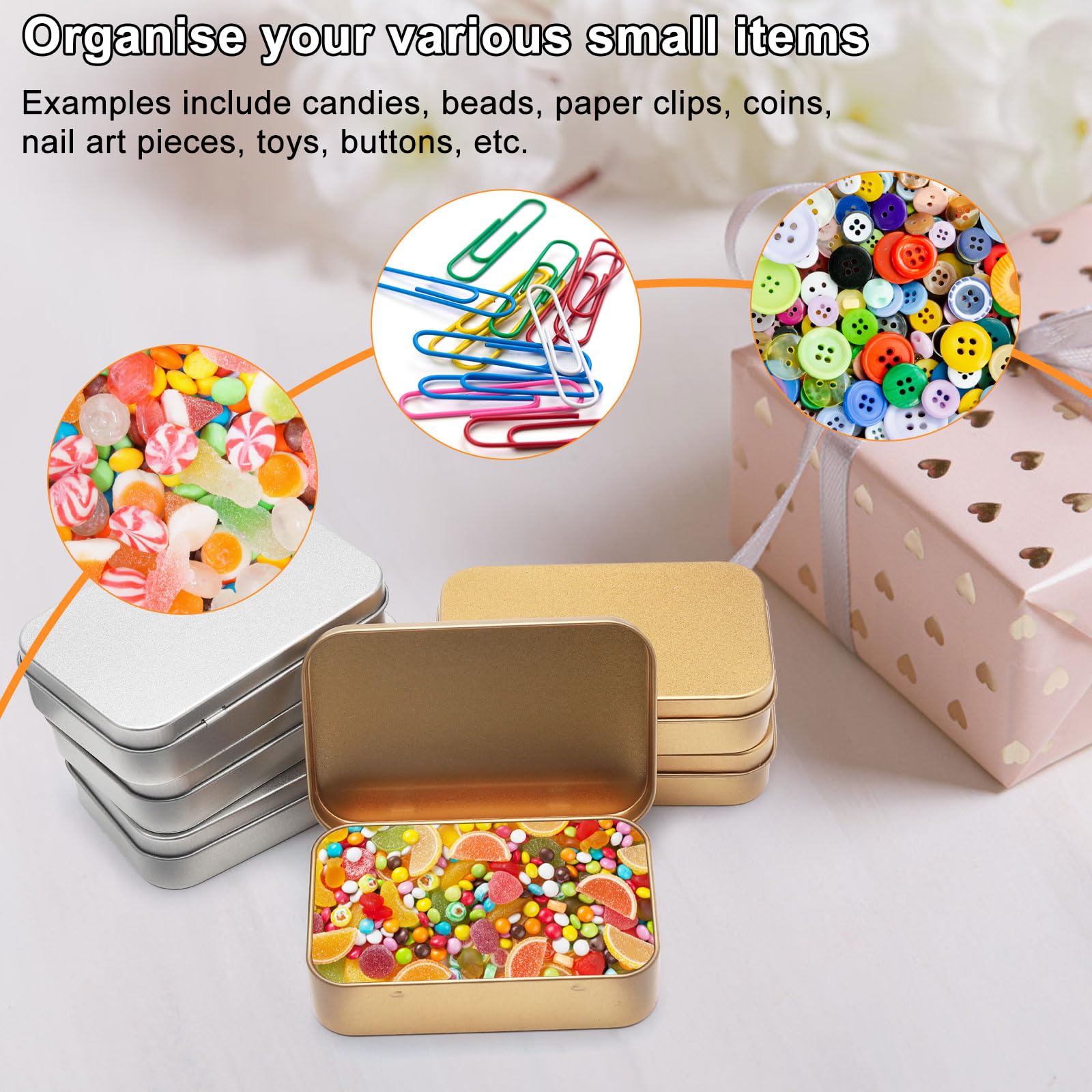 【Sechs Stück pro Set】Jedes Set enthält sechs Metallboxen, sodass Sie sie je nach Bedarf für verschiedene Zwecke nutzen können. Sixfolo 8 Stück Metalldosen mit Deckel Retro Metallbox Klein Rechteckige Mini Blechdose Tragbare Bonbondose Bunt Kleine Keksdose mit 8 Motiv für Kleine Gegenstände (9x6,5x2,5cm 【Robustes Metallmaterial】Hergestellt aus hochwertigem Metall, gewährleistet dieses Produkt eine lange Lebensdauer und kann den täglichen Gebrauch sowie das Tragen problemlos bewältigen. Es bietet zuverlässigen Schutz für Ihre Gegenstände. 【Exquisites Erscheinungsbild】Das schlichte und elegante Design verleiht ihnen einen edlen Look. 【Vielseitiges und kompaktes Design】Die kompakten Abmessungen machen sie ideal für die Aufbewahrung verschiedener Kleinigkeiten wie Schmuck, Pillen, Süßigkeiten, Bastelbedarf usw. Bestseller 6 Stück Rostfrei Metalldöschen Kleinen Blechdosen, 9,5x6x2,2 cm Mini Aufbewahrungsbox Metall Boxen Metalldosen, Metalldosen mit Deckel, Blechdose Klein, für Süßigkeiten, Schmuck, Schlüssel, Münzen Vylro Mehr anzeigen ⏷ 9,8/10 i n Mit Deckel 6 Stück Rostfrei Metalldöschen, Klein Mini Metalldosen, Metall Boxen, Kleinen Blechdosen Mit 6 Schwammpads, Schachtel Metall Vorratsdosen Für Süßigkeiten,Schmuck,Basteln,Nagelkunst(9.4*6.1*2 Cm Kleine Metalldose Diese Konstruktion ermöglicht einen schnellen Zugriff auf die Gegenstände. Die rechteckige Form dieser Aufbewahrungsbehälter macht sie ideal für die organisierte und leicht zugängliche Aufbewahrung einer Vielzahl von Gegenständen in jedem. Aufbewahrungsbox Schreibtisch Desktop Speicherbehälter Kleiner Stauraum Für Den
