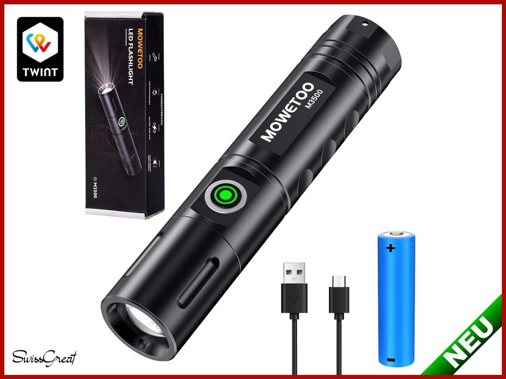Mini Taschenlampe LED USB C Aufladbar, Zoombares Taschenlampen