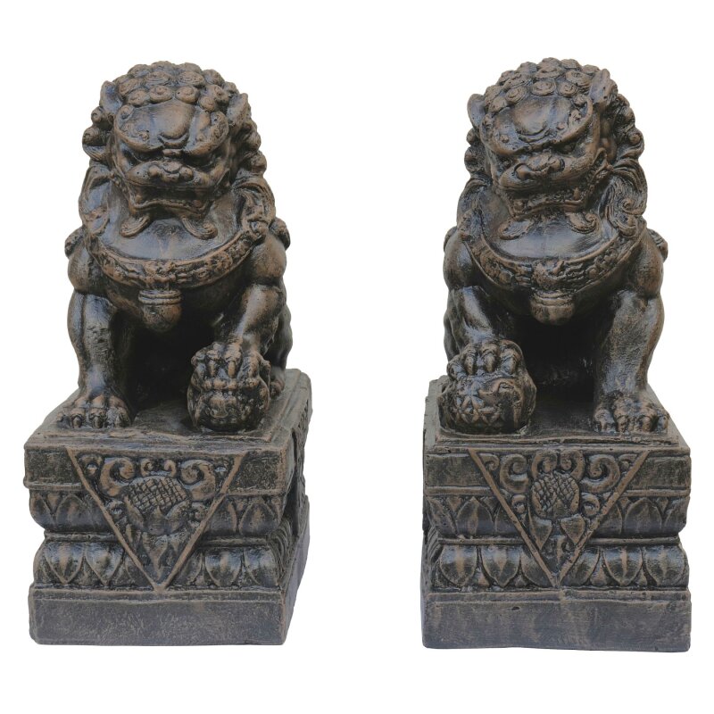 Steinfigur Mädchen BESTonZON Chinesischer Löwe Figur Miniatur Chinesische Wächterlöwen Sandstein Grau Paar Löwe Zapfen Deko Foo, Fu Hunde, Löwen, Rotlack, China, Wächterlöwen, Tempellöwen Frostbeständig bis -30°C Gartenfgur Gnom Waldfreund, Stenfgur, H. 33 cm... Alle Elemente werden in aufwendiger Handarbeit hergestellt. Wächterlöwen, Steinlöwen "Fu Dogs" aus frost- und wetterbeständigem Steinguss mit Antique-Finish (Handarbeit). Steinfigur für Garten, Terrasse, Balkon oder als exklusives Interieur Höhe: 38 cm, Stellfläche: 32 x 20 cm, Farbe: Grau, Gewicht: 24 kg, Werkstoff: Grauer Beton / Steinguss. Diese schützt vor Feuchtigkeit und Ausblühungen. 48 kg (mit Holzgestell) Frostfest & wetterbeständig – für Innen- & Außenbereich geeignet Lieferung einzeln, Pfotenstellung (links oder rechts) je nach Verfügbarkeit Symbolik:In traditioneller Anordnung wird der männliche Löwe links (mit erhobener rechten Pfote) und der weibliche Löwe rechts (mit erhobener linken Pfote) platziert, um den Eingang zu schützen und Wohlstand zu bewahren. de Markenqualität mit sehr hoher Kundenzufriedenheit. Bitte geben Sie Ihre Telefonnummer an, damit der Liefertermin mit Ihnen abgestimmt werden kann. 60 cm und einem Gewicht von rund 45–48 kg eignet sich die Figur sowohl für den Innenbereich als auch für den ganzjährigen Einsatz im Freien. In der fernöstlichen Tradition dienen Löwenwächter dem Schutz von Eingängen und symbolisieren Stärke, Mut und Würde.