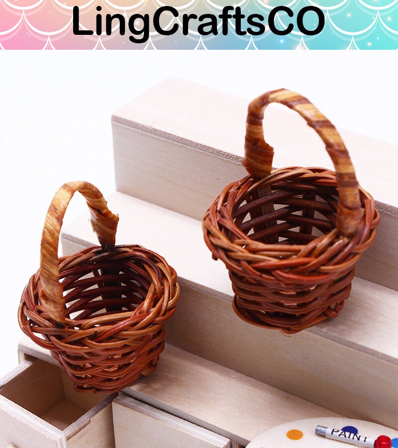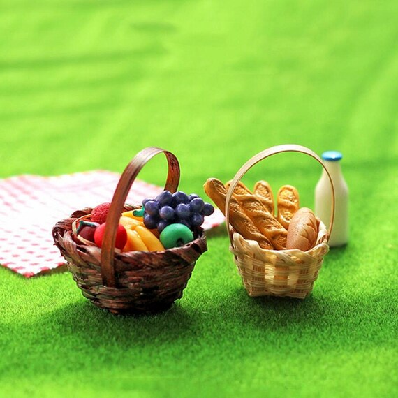 Miniatur Korb, Puppenhaus Bambus Korb, Miniatur Miniatur Korb, Puppenhaus Küche Zubehör, Pretend Play Spielzeug - Österreich