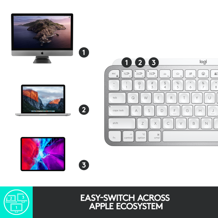 Logitech MX Keys Mini For Mac – Minimalistische Kabellose Tastatur Für MacBook Pro, MacBook Air, IMac, IPad, Bluetooth, Tasten Mit Hintergrundbeleuchtung, USB-C, Flüssiges Tippen, DEU QWERTZ - Grau