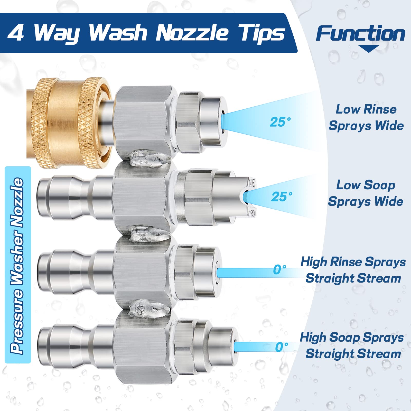 JRod Hochdruckreiniger Düsen Kompatibel Mit 4 GPM Hochdruckreiniger, Edelstahl J ROD Weiche Waschdüsen, 4 Wege J Stangenspitzenhalter, 1/4 Zoll Schnellanschluss