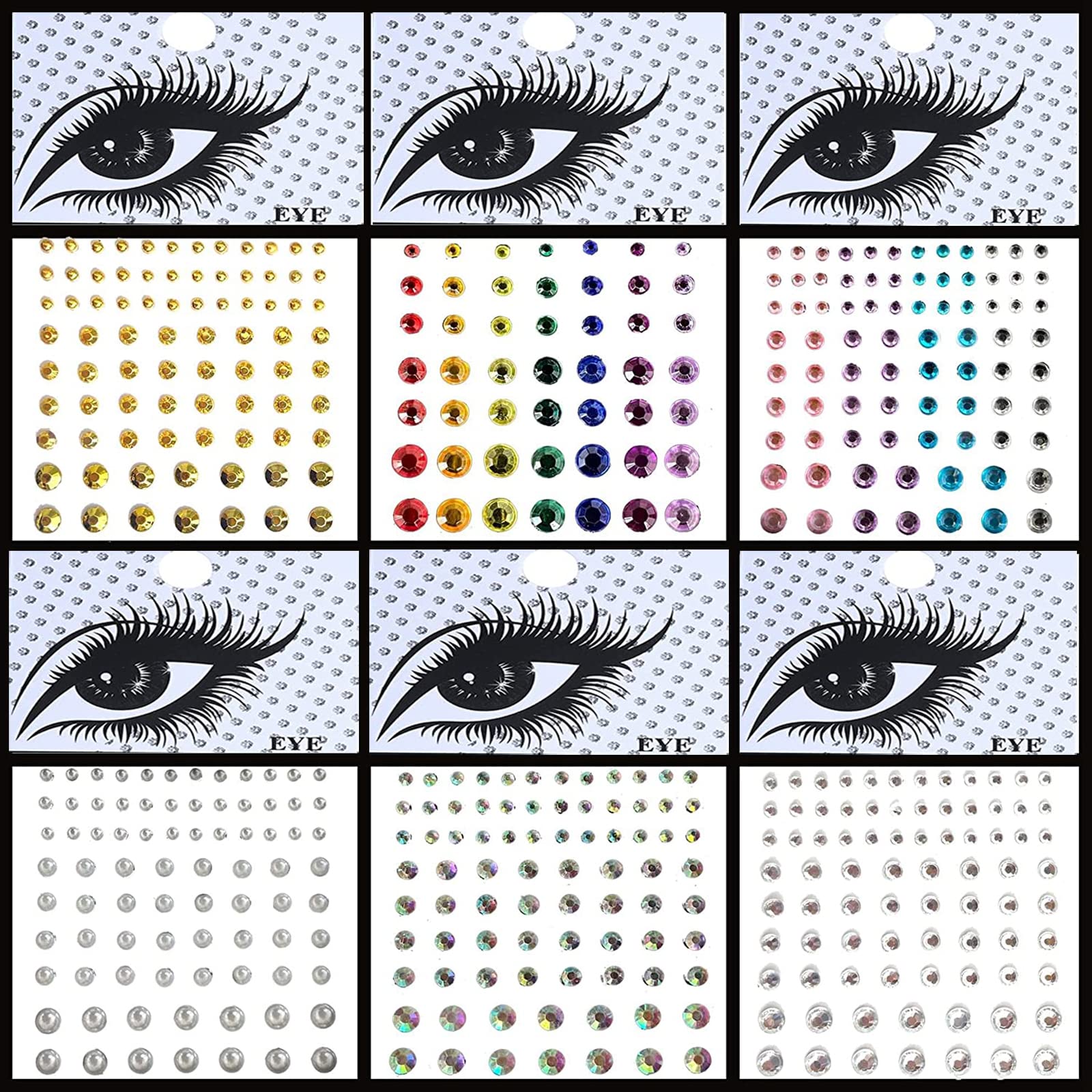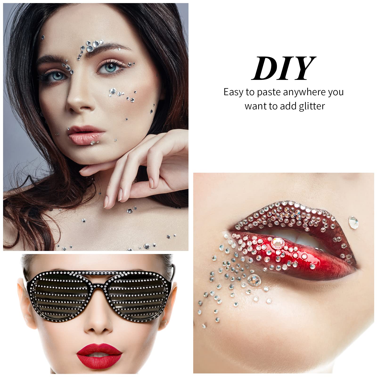 Glitzersteine Gesicht,Tangger 6 Pcs Glitzer Gesicht Mit 6 Nagelsticker,Glitzersteine Gesicht Für Festival Schmuck,Glitzersteine Selbstklebend,Strasssteine Gesicht,Glitzersteine Gesicht Festival