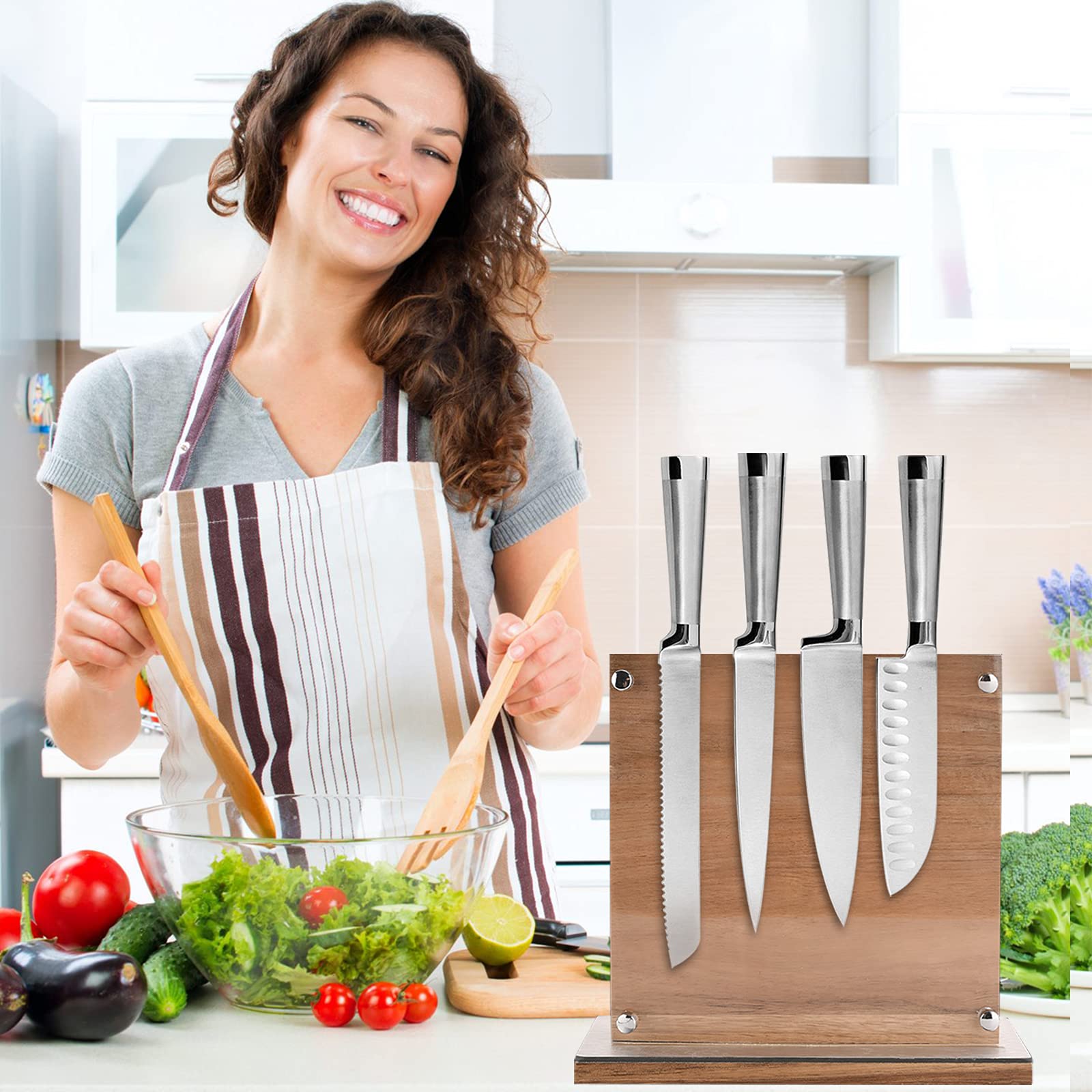YIIYIIN Magnetischer Messerblock Mit Acryl-Schild – Doppelseitig