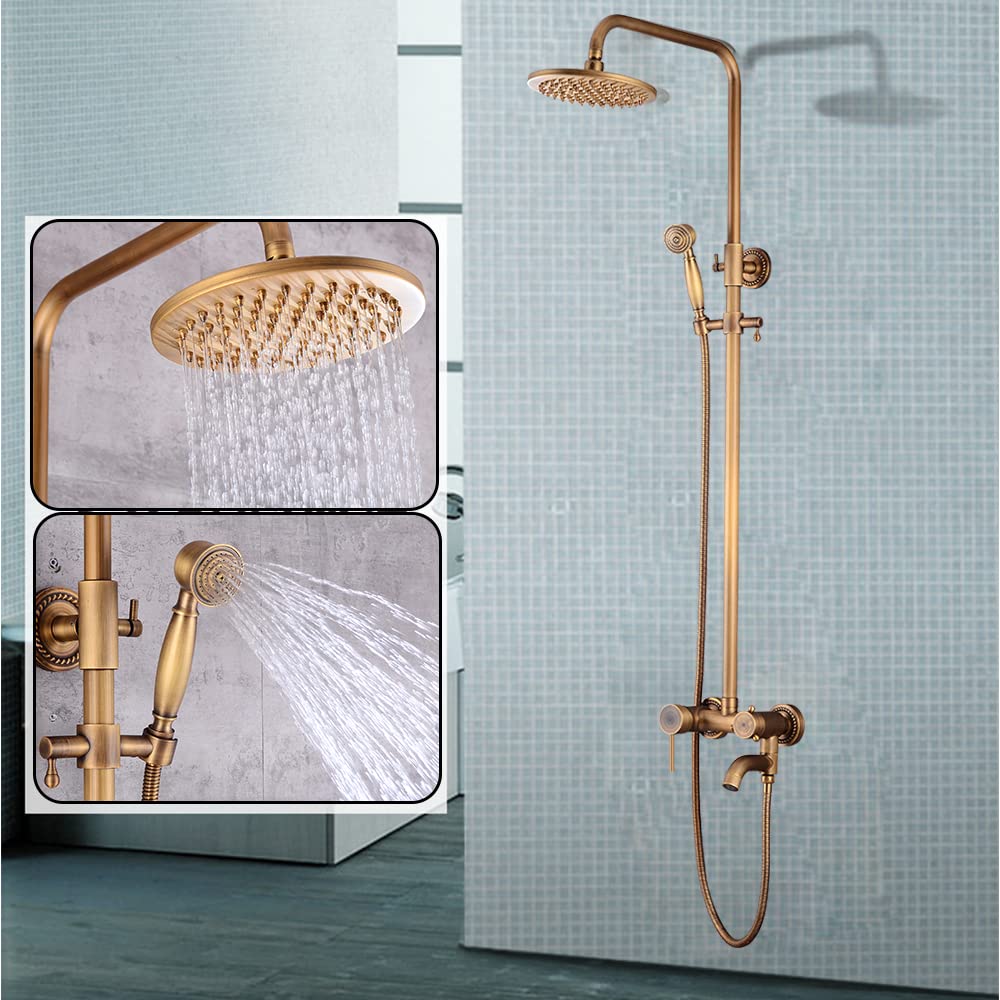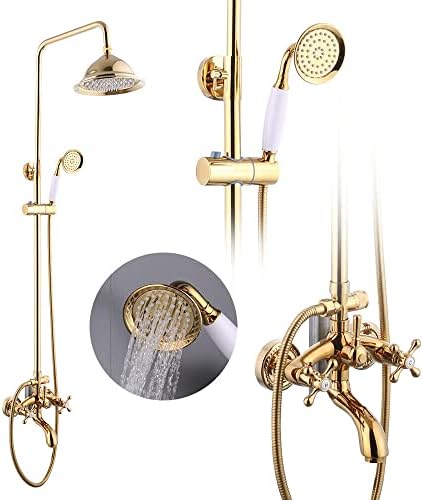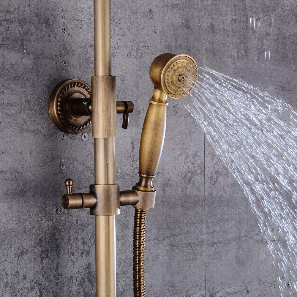 【Messing Duscharmatur】Das Duschset kann an alle gängigen Warm- und Kaltwassersysteme angeschlossen werden. Das antike Messingfinish ist antioxidativer und kratzfester, nicht leicht zu verfärben und macht das Baden gleichzeitig angenehmer. 【Premium-Material】 Messing Ganzes Duschset. Das Duschset kann an alle gängigen Warm- und Kaltwassersysteme angeschlossen werden. Retro Duscharmatur mit Handbrause und Wandhalterung Hochpräzise Spule Hochwertiges antikes Messingfinish, einschließlich Umschaltventil. Unsere Produkte werden aus lokalen Lagern geliefert., DHL-Transport Einfache und klassische Doppelkreuzgriffe steuern die Wassertemperatur und den Wasserfluss. Duscharmatur Badewanne Duscharmatur Revival Mit Anschlusswinkel Und Handbrause - Retrobad Mischbatterie Mit Brausehalter Wir werden Sie innerhalb von 24 Stunden bedienen., Lieferung: 1x Mischventil , 1x Kopfbrause , 1x Handbrause , 1x Schlauch , 1x Trägerhalterung , 1x Installationspaket Wannen-Zweigriffmischer-Set Retro bodenstehend inkl. Handbrause Einfache Installation, einfach an vorhandenes Ventil anschließbar. 【Spezielles Design】Vintage Luxus Antik Messing Finish. Hier finden Sie Mischer und Thermostate für Ihre Dusche in Kombination mit einer Handbrause und Brausestange oder einen Brausehalter. Die beste Lösung um Ihre alte Duschgarnitur einfach und schnell zu ersetzen Einstellbare Handbrause und Duschhöhe Der Halter kann nach links und rechts gedreht werden, um den Winkel und die Höhe der Handbrause auf ein angenehmes Duscherlebnis einzustellen. Duschsystem mit rundem Regenduschkopf. Regenduschköpfe, Handbrause und Facette Welchen Modus möchten Sie, schrauben Sie es einfach auf den entsprechenden […] Material: Kupfergehäuse, Kupferhandbrause, Edelstahl-Kopfbrause, Kupferrohr. Technische Spezifikationen: Oberfläche: bronze oberflächenbehandlung. 8 Zoll Regenduschkopf 8-Zoll-Duschkopf im Vintage-Stil für eine angenehme Dusche und um 360 ° gedreht.