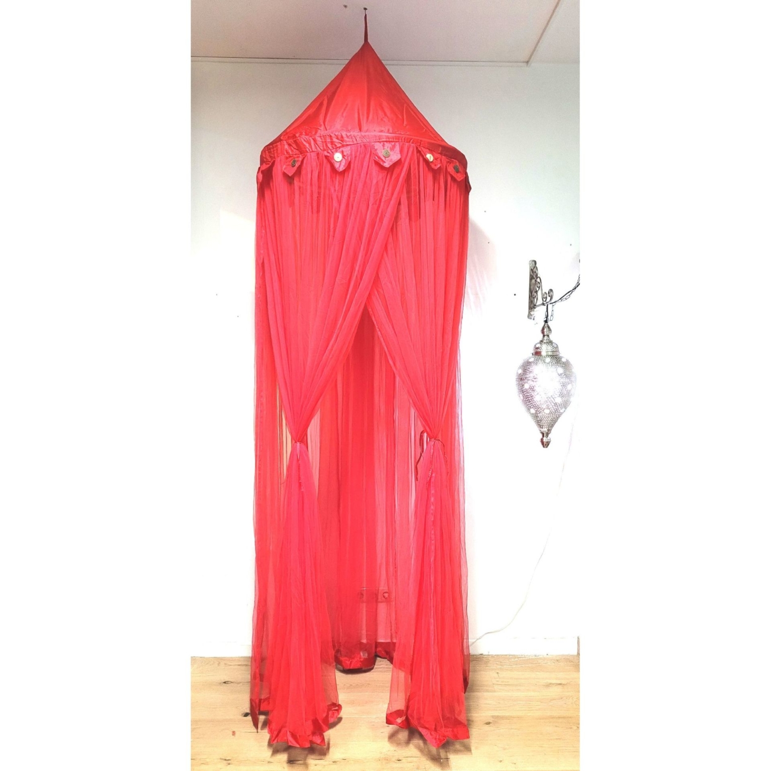 Doppelbett Mit Baldachin Vor Rot-weisser … – Bild Kaufen – 11350835