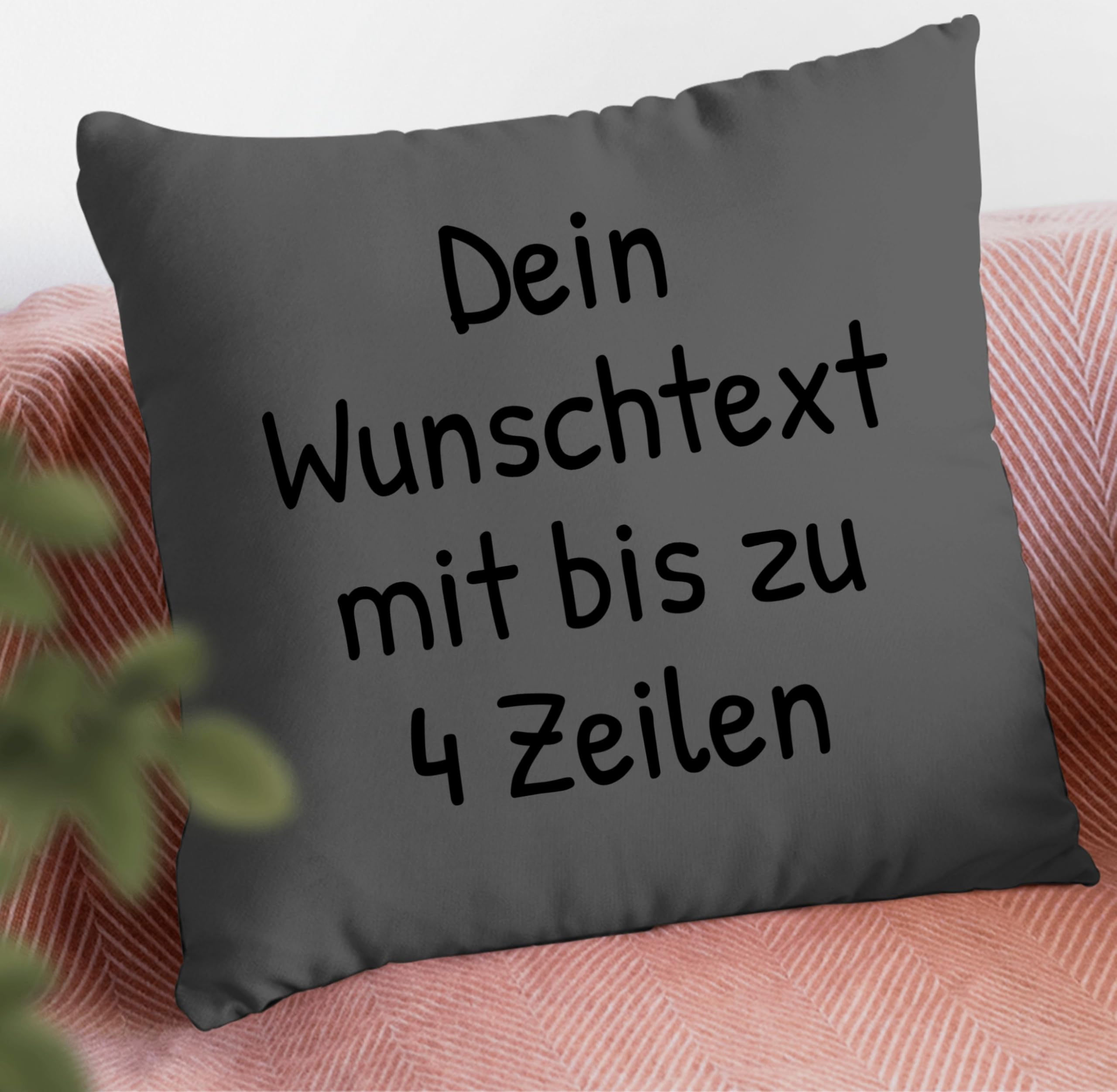 Greif jetzt direkt zu und bereite deinen Liebsten eine Freude mit diesem witzigen Dekokissen! Das Dekokissen aus Jersey Stoff kann in der Waschmaschine bei 30° auf links gedreht gewaschen werden und sollte nicht in den Trockner gegeben werden. Kissen 50x50 - Aufdruck selbst gestalten - Wunschtext - 50 x 50 cm - Schwarz - texten zum erstellen personalisierte Text schmusekissen individuellem Personalized Pillow 4 zeilen : Geschenk mit Namen personalisiert by Shirtracer Ganz egal, für welchen unserer Prints du dich auch entscheidest - dieser Kissenbezug ist garantiert ein Hingucker auf jeder Couch oder auch als Deko Zierkissen auf deinem Bett! Der Baumwollstoff sorgt dafür, dass das Kissen besonders weich und widerstandsfähig ist. Der Sofakissen Bezug hat eine Größe von 50x50 cm und verfügt über einen Reißverschluss. Bedruckter Kissenbezug 50 x 50 cm Dieser schöne Kissenüberzug ist eine tolle Geschenkidee für Freund oder Freundin und zaubert zu den verschiedensten Anlässen ein Lächeln aufs Gesicht. Durch diesen Reisverschluss lässt sich die Kissenfüllung kinderleicht herausnehmen und auch das Waschen des Überzuges wird dadurch erleichtert. PR Print Royal Flauschiges Fotokissen selbst gestalten - Kissenbezug Gemeinsam mit einer Kissenfüllung ist dieser Bezug das ideale Geschenk für Familie und Freunde zum Einzug, Geburtstag oder zu anderen Anlässen. Achte beim Kauf bitte darauf, dass es sich hier lediglich um einen Kissenüberzug handelt und die Füllung separat dazu gekauft werden sollte. Kissenbezug mit eigenem Foto bei dm Foto-Paradies: 100% Baumwolle Mit oder ohne Füllung Schnelle Lieferung Jetzt selbst gestalten & bestellen Mit diesem ganz individuellen Geschenk machst du Familie und Freunden mit Sicherheit eine große Freude. Du wählst im -Shop den Kissenbezug aus, das du mit einer Stickerei personalisieren möchtest und entscheidest dich für die Buchstabenform. Möglich sind Großbuchstaben von A bis Z und das Punkt-Zeichen Kissen mit Motiv: Das schöne Gurli Kissen mit den Maßen 50 x 50 cm wird durch einen coolen Aufdruck ergänzt.