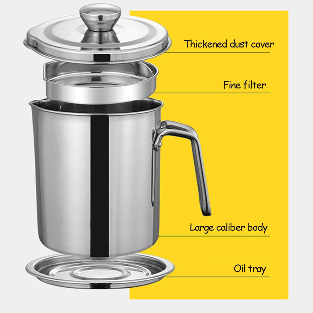 Ölkannen Sieb Öl Mit Filter Topf Fettbehälter, Mit Filter Topf Edelstahl Hohe Kapazität Anti-Leckage Ölabscheider Multifunktion Zum Kochen Öllagerung Küche Geschenk (1500ml