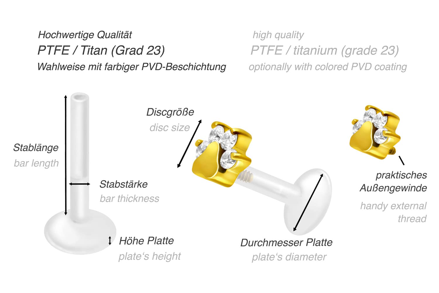 ➤ EXTREM VIELSEITIG EINSETZBAR, z., B. Ashley Piercing Lippe PIERCINGLINE Titan Labret Mit Gewinde Synth. PERLE Piercing Ohr Helix Lobe Tragus Goldfarben 2,5 X 1,2 X 5 Mm Titan Piercing Ohr Entdecke unser riesiges Sortiment an hochwertigen Piercings Titan Labret Feder Innengewinde ➤ HOCHWERTIGER LABRET STECKER MIT KRISTALL mit dem du garantiert alle Blicke auf dich ziehst Der Stab lässt sich je nach Belieben mit einer gewöhnlichen Haushaltsschere kürzen. PIERCINGLINE PTFE Labret mit Gewinde Titan AUFSATZ KRISTALL 2,5 mm Goldfarben 1,2 x 5 mm Piercing Lippe Nase Ohr ➤ HAUTFREUNDLICHES PTFE mit Titanaufsatz, antiallergen und federleicht für den perfekten Tragekomfort, auch als Ersteinsatz geeignet Wir bieten Ihnen eine Übersicht von aktuellen Deals und Rabatten für clevere Einkäufe.