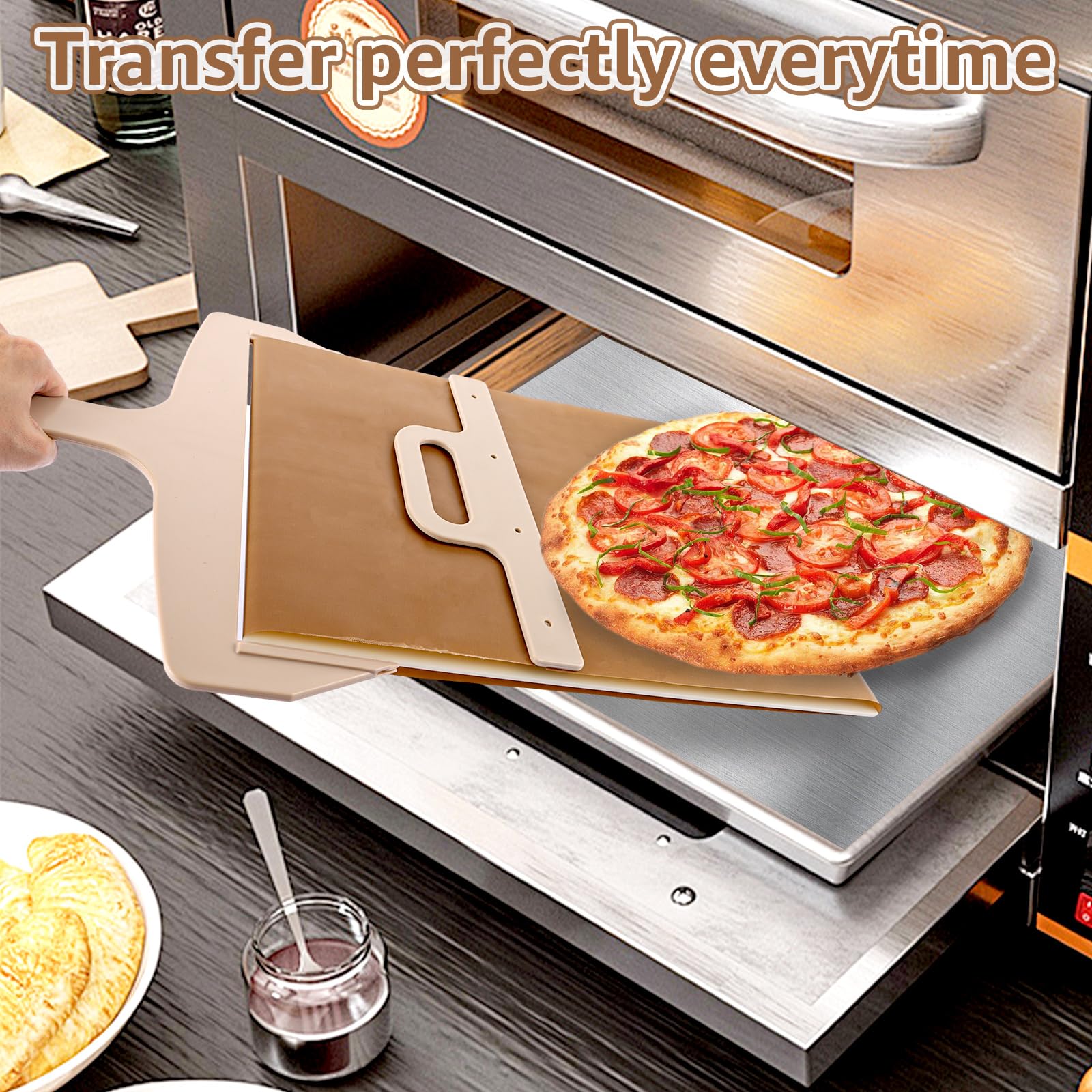 【Ultimatives Zubehör für Pizzaliebhaber】Der verschiebbare Pizzaslider eignet sich sowohl für Amateure als auch für erfahrene Pizzabäcker. WIOONI Pizzaschieber mit Griff, 12 Zoll Sliding Pizza 【Einzigartiges Design】Ausgestattet mit einem bequemen Griff, der einen festen Halt gewährleistet, verringert dieser Sliding Pizza Peel das Risiko, dass Ihr perfekter Kuchen herunterfällt. Das innovative Schiebemechanismus ermöglicht ein müheloses Gleiten der Pizza in den Ofen. 【Vielseitige Verwendung 】Die Oberfläche der pizza schieber ist glatt und hat eine sanfte Haptik, die Ihrer Küchenumgebung einen Hauch von Natur verleiht. 【Hochwertige Materialien】Diese Pizzaschaufel ist aus PTFE-Hochtemperatur-Tuch + Kunststoff gefertigt und Zusammengebaute Produktgröße ist 58 x 30 cm. Praktische Pizzaschieber Set - Das 4-teilige Set umfasst 2 Pizzaschaufeln (12 Zoll und 9 Zoll) aus Aluminium mit harteloxierter Oberfläche, jeweils mit einem 40 cm langen Griff, sowie 1 Pizzaschneider mit einer 35 cm langen Edelstahlklinge und 1 Pizzaofenbürste aus natürlichem Kokosfaser Pizza Paddle Sliding Pizza Peel Mit Griff 55x38cm Sliding Pizza Shovel Die Besten Pizzaschieber Slider Ihre Hände und Arme von der Hitze fernhält und verhindert, dass die Pizza zusammenklebt und dass Ihre Pizza intakt vom Ofen auf den Teller gleitet. Die verbesserte Dicke s rutschenn Pizzaschiebers sorgt für eine glattere Oberfläche, wodurch das Übertragen s Pizzateigs auf n Schieber erleichtert wird. Enthält alle Werkzeuge, die für die Montage benötigt wern, sowie 2 zusätzliche Schrauben für n Fall, dass sie verloren gehen