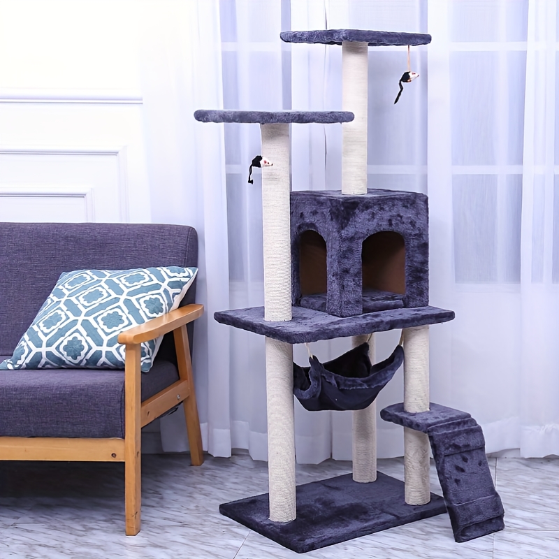 Außerdem ist es einfach und schnell aufzubauen mit klaren Illustrationen und nummerierten Teilen in der Bedienungsanleitung. Gesamtmaße: 49,5 x 49,5 x 121,9 cm (L x B x H). Stabile und stabile Struktur: Sorgen Sie für Sicherheit und Stabilität Ihrer Katze mit einem 5-lagigen Aktivitätszentrum aus dickem Holzwerkstoff, das von dicken Pfosten unterstützt wird. Darüber hinaus verfügt die Katzenhütte über einen Metallrahmen für hohe Festigkeit, während sie mit handgewebtem Rohrkolben bedeckt ist, was privat und gemütlich für Katzen allein ist. Es gibt eine warme Hängematte, eine geräumige und luxuriöse Höhle und eine ultraweiche Seitenstange, die großartige Orte zum Schlummern sind. Außerdem kommt es mit bequemen Sprungplattformen mit Plüschmatten, sodass Kätzchen sicher auf und ab springen Ultraweiche und haustierfreundliche Plüschkissen, um sie warm und gemütlich zu halten. Natürliche Sisalseile ermöglichen es Katzen, Pfoten zu schleifen, um ihre natürlichen Instinkte freizusetzen. NATÜRLICHE KATZENKATZBÄUME - Halten Sie Ihre Katzen gesund und unterhalten Sie sie mit mehreren mit Sisal umwickelten Stämmen, die ihren natürlichen Kratzinstinkt befriedigen und gleichzeitig Fettleibigkeit verhindern und Ihre Möbel schützen. Kratzbaum Für Katzen Kaufen Moderner Katzenbaum Mit Höhle Und Kratzstämmen (Gebraucht) In Kratzbaum Grosse Katzen Stabil Breiter Boden vermeidet Kippen, feine Verarbeitung, um Grate zu beseitigen., Produktmerkmale: Farbe: Naturfarben. MIAO PAW Katzenbaum für Indoor-Katzen, Katzenturm mit Kratzbaum Besonderheiten: 5-lagige Struktur sorgt für große Freude beim Auf- und Absteigen Niedliche Höhle in Katzenform mit handgewebtem Rohrkolbenkorb für Privatsphäre. 【Wunderschönes Aussehen & einfache Montage】 Verleihen Sie Ihrer Wohnkultur einen Hauch von modernem Stil mit einem wunderschönen und attraktiven Katzenturm, der sich perfekt einfügt. Wir haben Produkte im Bereich „Katzenbaum Modern miteinander verglichen und Empfehlungen für Dich zusammengestellt. Hier findest Du die Top 16 im Bereich „Katzenbaum Modern. Der Katzenbaum ein moderner Blickfang für jeden Wohnraum Größe der Katzenhütte 36., 8 cm x 36., 8 cm x 33., 0 cm (L x B x H) Durchmesser Katzenbett 39,4 cm Tragfähigkeit jeder Schicht: 15,0 kg Nettogewicht: 10,7 kg. Alle Plattformen, einschließlich des Innenraums des Katzenbettes, sind mit gemütlichen Plüschmatten ausgestattet, damit sich Katzen wohl fühlen. Er kann individuell angepasst und Kratzelemente, Hängematten oder Höhlen hinzugefügt werden.Mehr erfahren Seitlich klingelnde Fellbälle bringen endlosen Spaß. Große Hängematte lässt pelzige Freunde glücklich schweben. Material: Rohrkolbengeflecht, Sisalseil, Plüsch, Holzwerkstoff, Polyestergewebe.