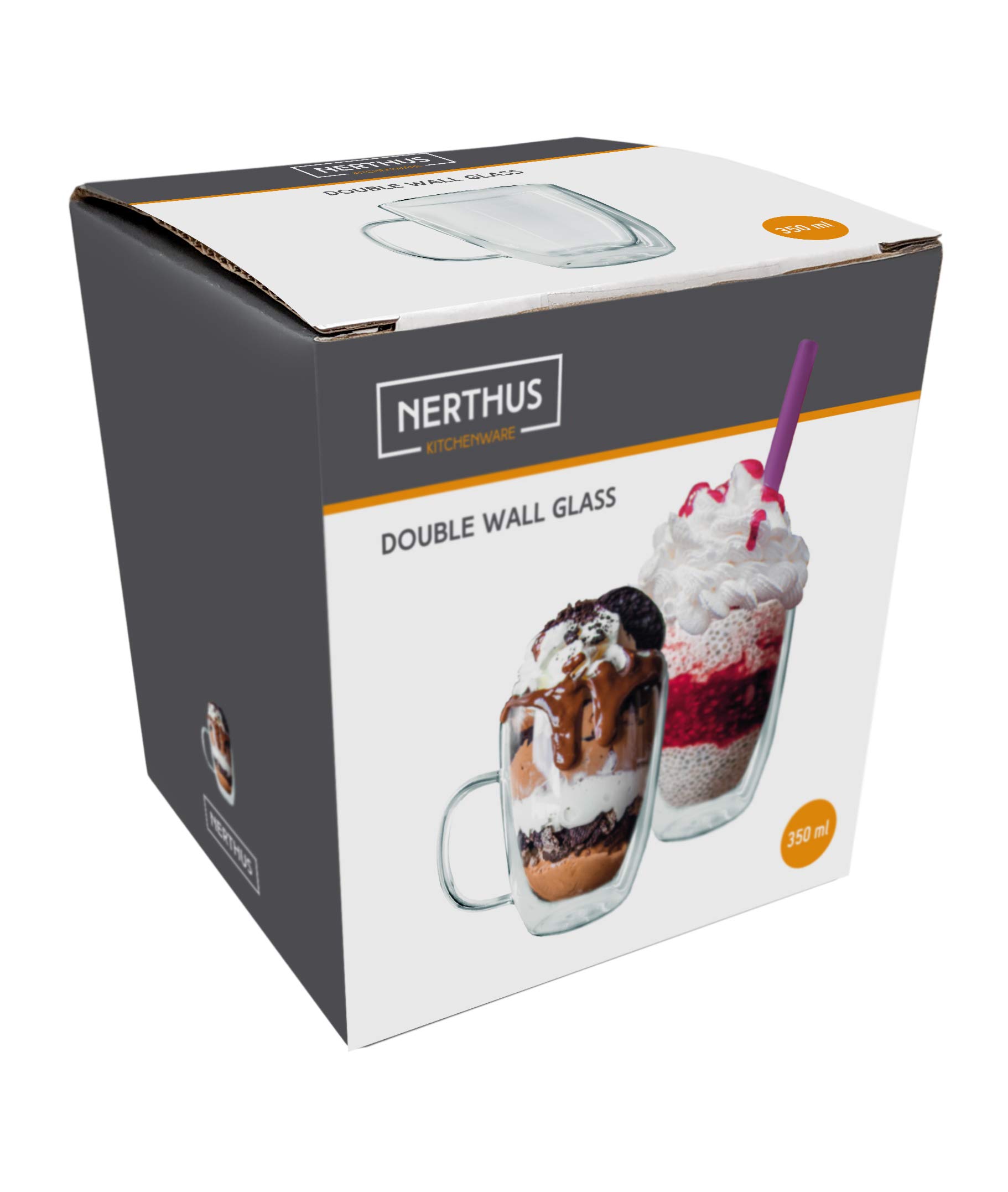 Nerthus FIH 660 660-Tasse Mit Henkel, 350 Ml, Hitzebeständig, Doppelwandig Mit Borosilikatglas, Geeignet Für ür Kaffee, Tee, Desserts, Glas