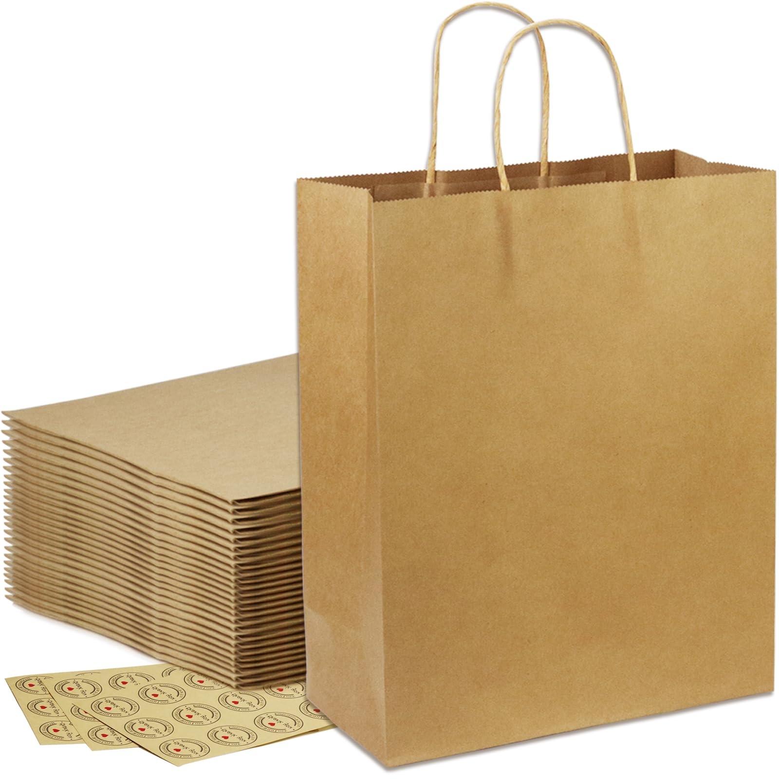 Papiertüten Mit Henkel, Kraftpapier Tüten Mit Henkel 21 X 11 X H21 Cm, Geschenktüten Papier Mit