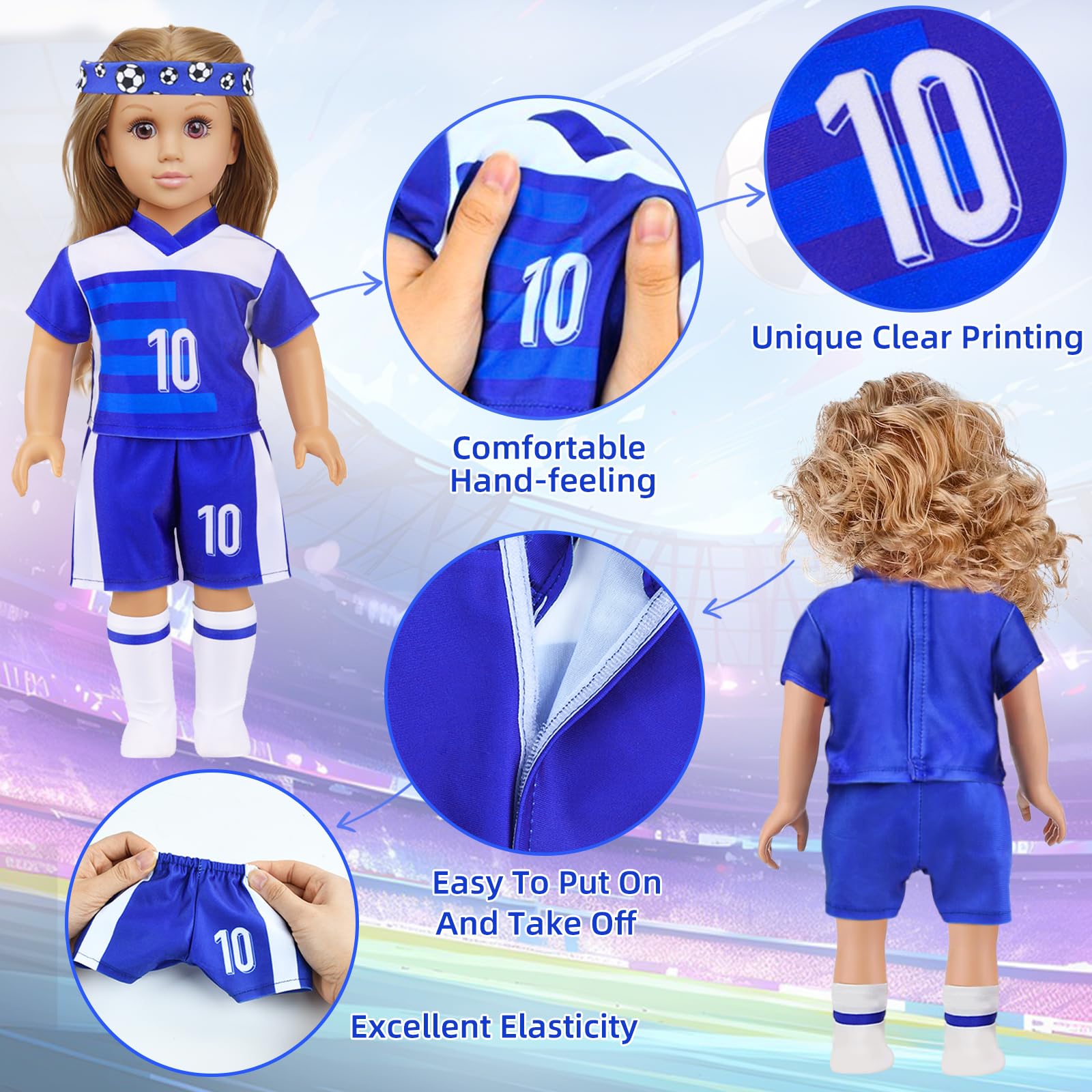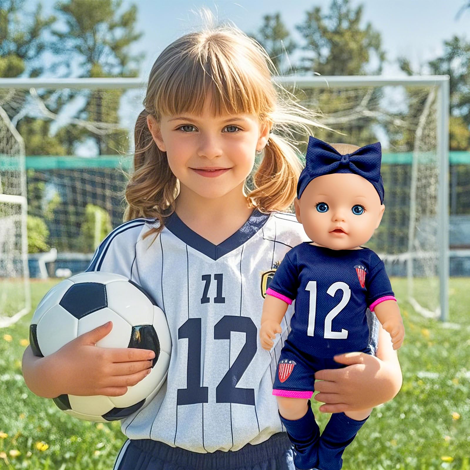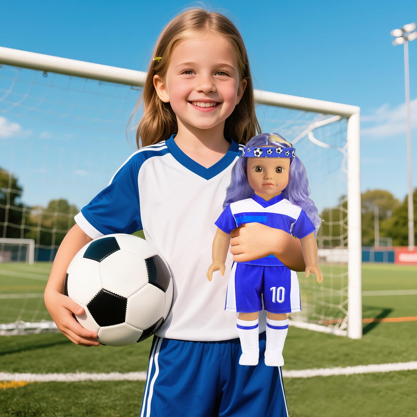 JSTHHTT Puppenkleidung Für Puppen, Fußball Kleidung Mit Kurzen Ärmeln Shorts Stirnband Ballspiel Schuhe Haarspangen Ärmel (Keine Puppe