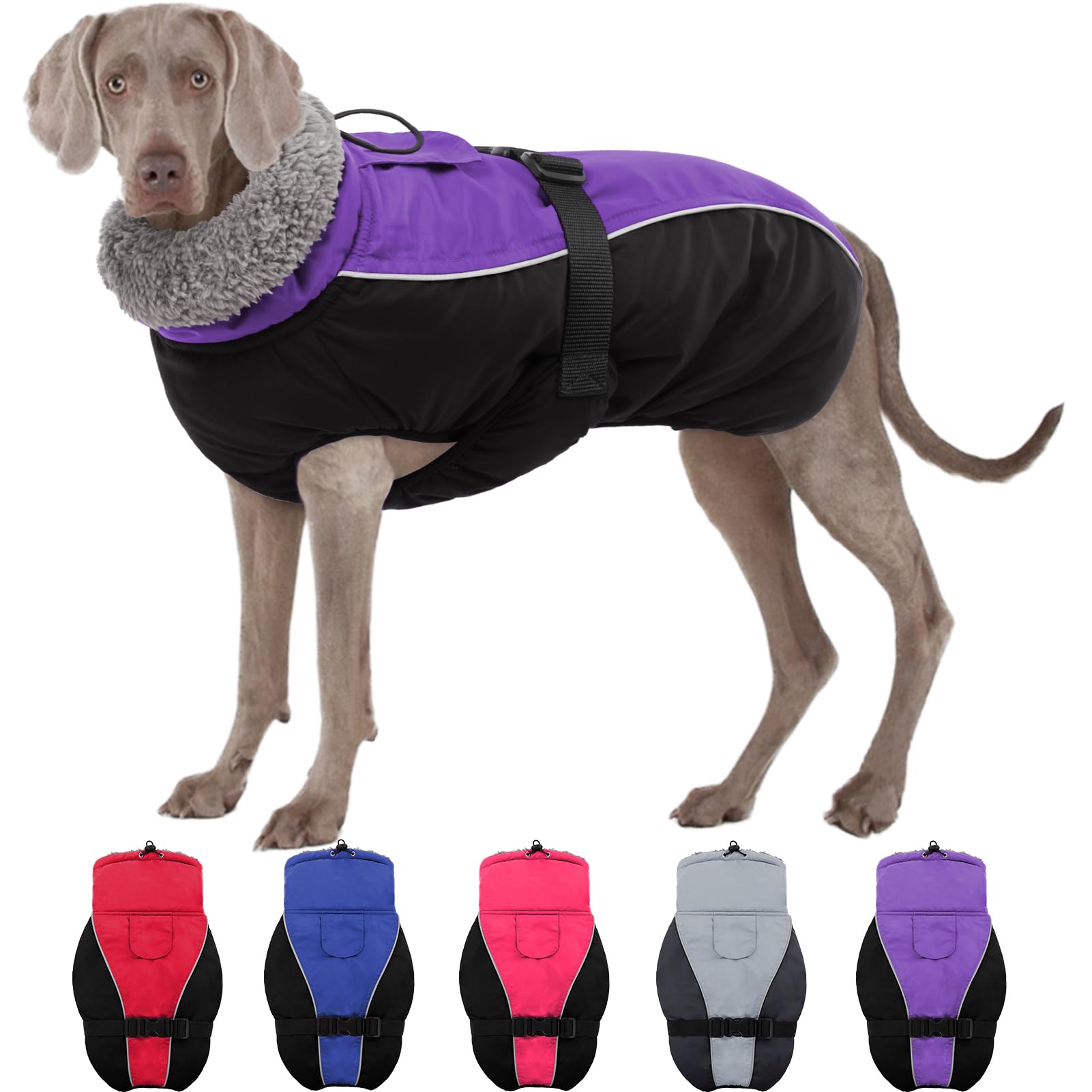 SUNFURA Kleiner Hundemantel, Warme Hundejacke Mit Loch Für Die Leine Mit Reissverschluss Fuer Kaltes Wetter, Reflektierender Hunde Wintermantel, Hunde Fleecejacke Mit Verstellbarem Pelzkragen Fuer 4641821341