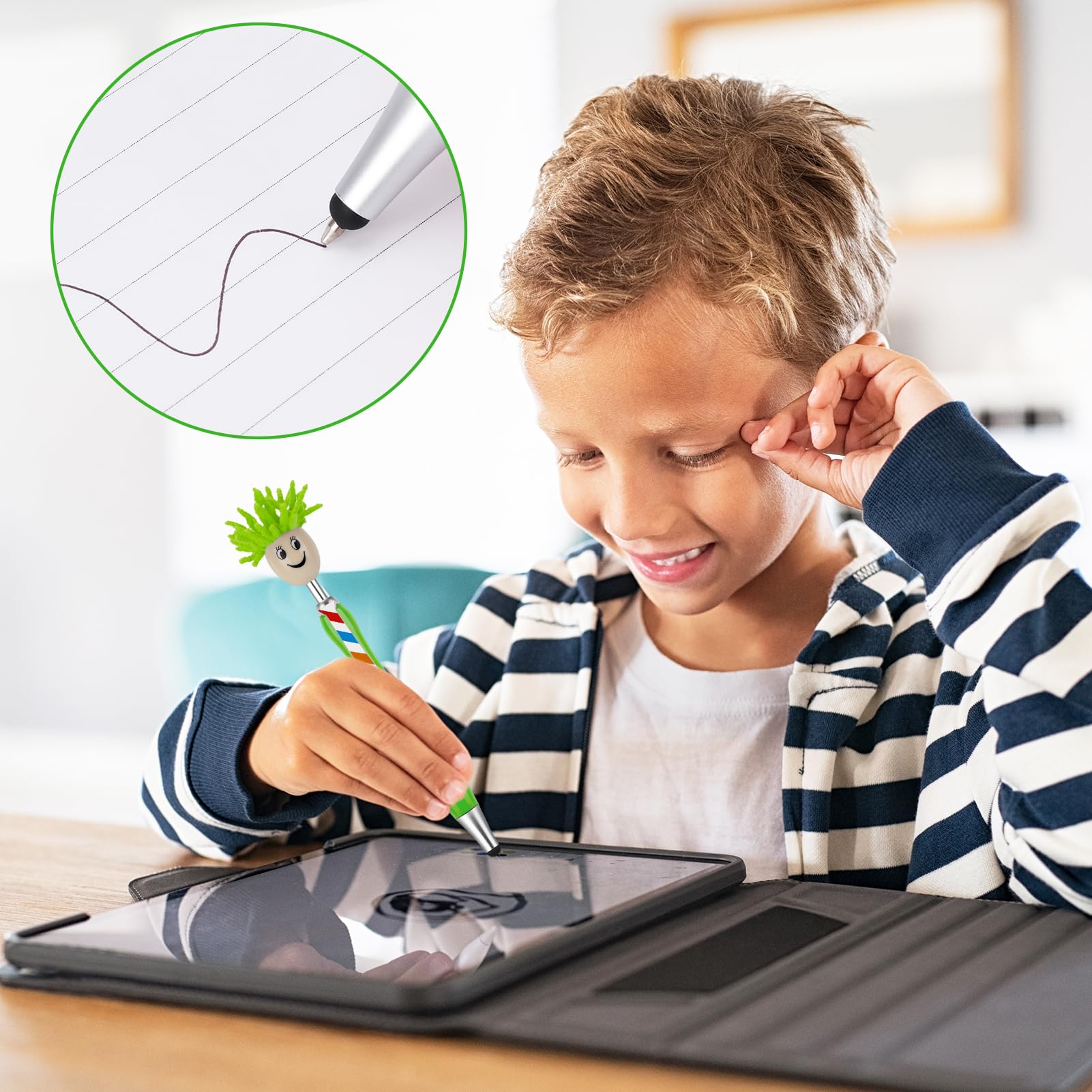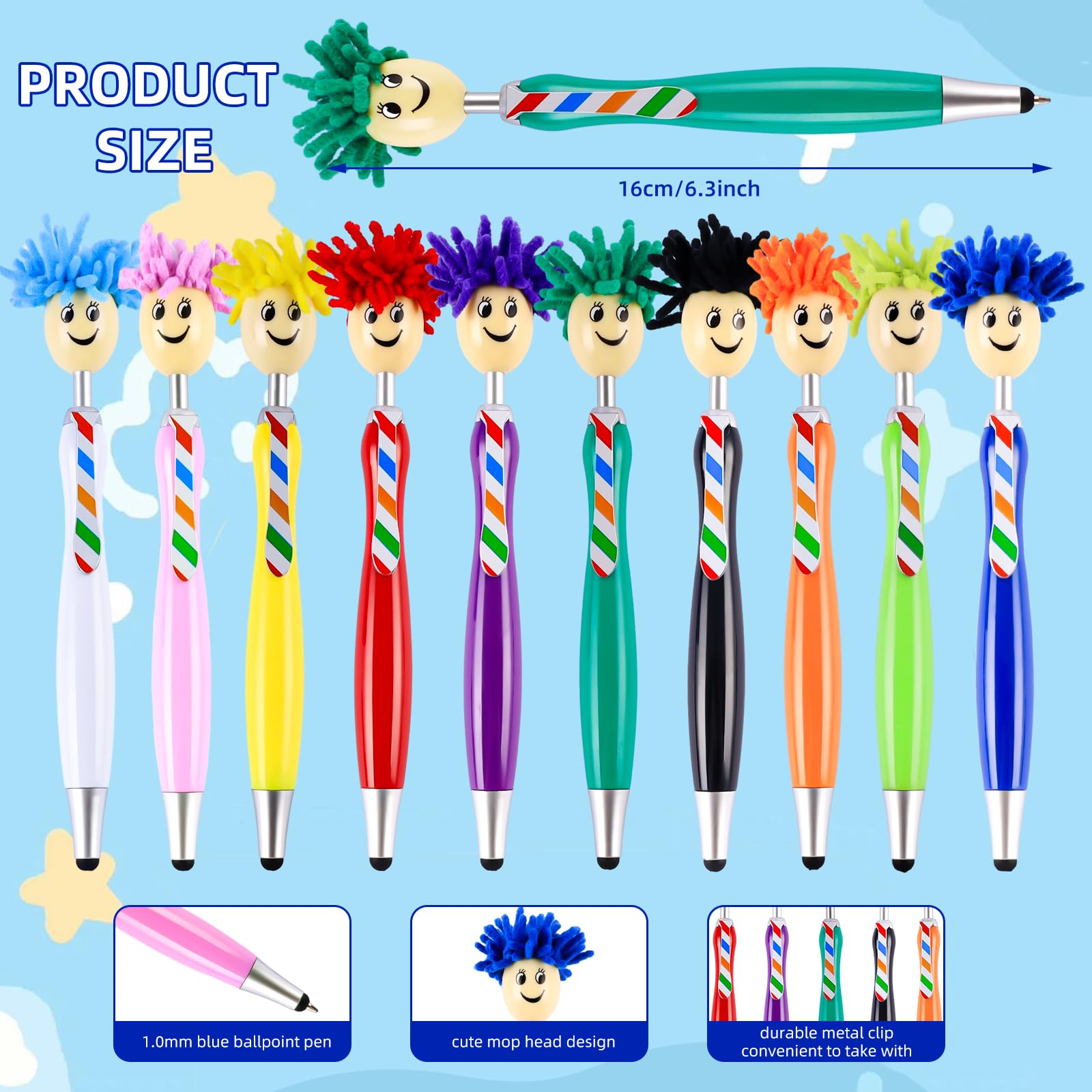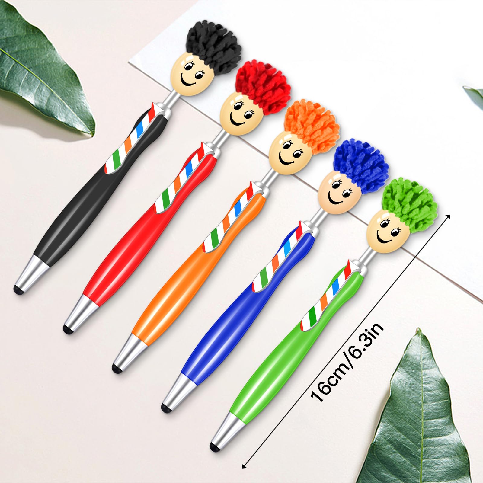 12 Stück Lustige Kugelschreiber Für Kinder, Kugelschreiber Mit Mop Topper, Microfaser Bildschirmreiniger Stifte, Weihnachtskugelschreiber, 3-in-1 Stylus Für Büro, Schule, Geburtstag Kinder Party
