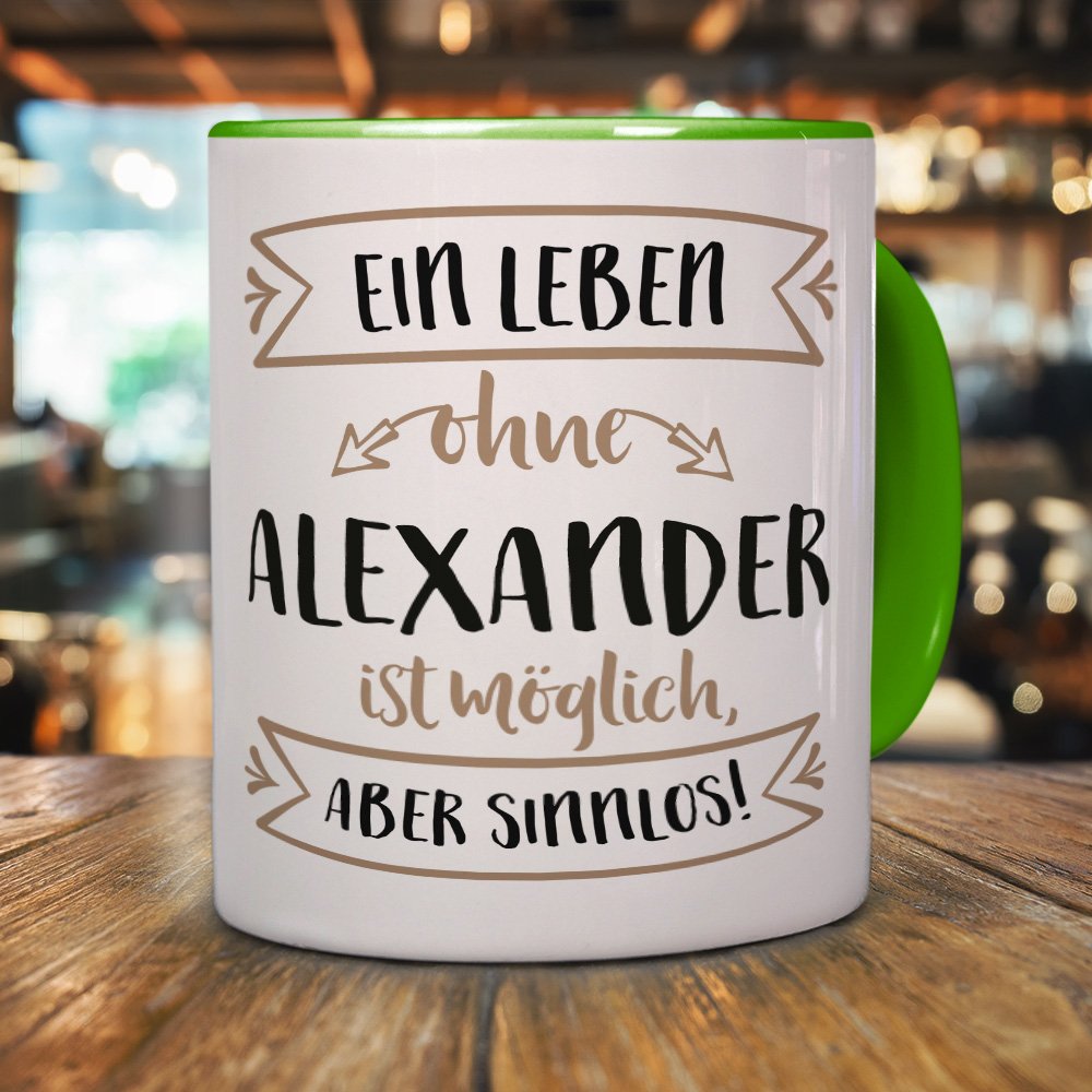 Becher und Druck in höchster Qualität. Brillant glänzender Aufdruck, spülmaschinenfest Printplanet Tasse Mit Namen Alexander - Motiv Chrom-Schriftzug Die extreme Haltbarkeit des Motivs durch den Thermo-Transfer-Druck und der brillant glänzende Aufdruck bereiten dem Besitzer lange Freude., Hochwertiger Kaffeebecher Bedruckt mit dem Namen Alexander, Motiv: Chrom-Schriftzug Die ganz persönliche Tasse mit magischem Namens-Motiv! Kaffeetasse mit dem Namen Alexander bedruckt. Die personalisierte Tasse wird sofort nach Bestellung speziell für Sie in Deutschland und in Handarbeit produziert. Anderer Namenswunsch? Einfach in der Suche printplanet Tasse + Wunschname eingeben Füllvolumen der Kaffeetasse beträgt 325 ml Es stehen auch weitere Tassen-Designs mit einer Vielzahl von Motiven zur Auswahl. digital print Namenstasse Alexander - Löffel-Tasse mit Namens So beginnt der Morgen gleich mit einem Lächeln. 9,5 cm; Durchmesser: 8 cm Originales Design von digitalprint Füllvolumen der Kaffeetasse beträgt 325 ml Anderer Namenswunsch? Einfach in der Suche "printplanet Tasse + Wunschname" eingeben Farbe:Blau Überrasche deine Liebsten zum Start in den Tag mit einem Kaffeebecher mit eigenem Namen.