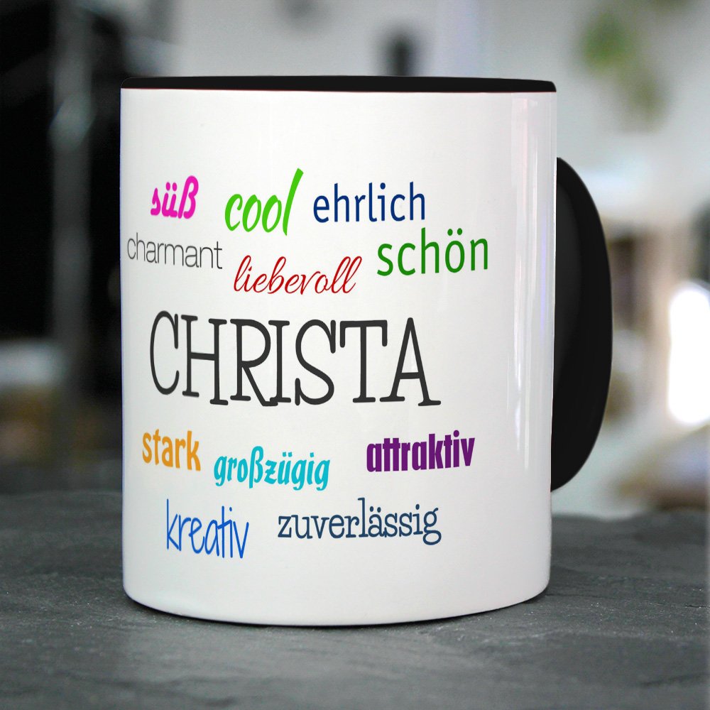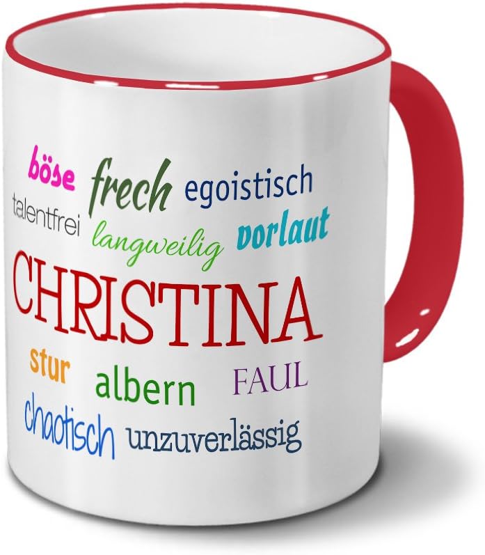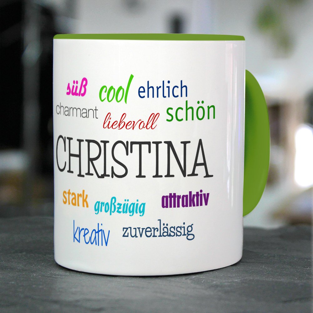 Füllvolumen der Kaffeetasse ist 325 ml Ein ganz besonderer Kaffee/Tee-Genuss für zu Hause oder das Büro. Die extreme Haltbarkeit des Motivs durch den Thermo-Transfer-Druck und der brillant glänzende Aufdruck bereiten dem Besitzer lange Freude., Hochwertiger Kaffeebecher Thermobecher weiß mit Namen Christina - Motiv Positive Eigenschaften - Coffee to Go Becher, Thermo-Tasse JUNIWORDS Tasse, Christina-Ingrid, Name Anfangsbuchstabe Initial Alphabet Floral Buchstabe C Monogramm Motiv, Weiß (5440875 Es stehen auch weitere Tassen-Designs mit einer Vielzahl von Vornamen zur Auswahl. Einfach in der Suche: digital print Tasse + Wunschname eingeben. Die Tasse mit persönlichem Namen ist für die Spülmaschine geeignet und besteht aus kratzfestem Material. Die personalisierte Tasse wird sofort nach Bestellung speziell für Sie in Deutschland und in Handarbeit produziert. Brillant glänzender Aufdruck, spülmaschinenfest Backen Mit Christina Printplanet Tasse Mit Namen Christina Positive Eigenschaften Tagcloud - Pink - Namenstasse, Kaffeebecher, Mug, Becher, Kaffeetasse Rituals Karma Personalisierte Tasse mit Namen Christina , Maße: Höhe: ca., 9,5 cm; Durchmesser: 8 cm Kaffeetasse mit dem Namen Christina bedruckt. Design: Positive Eigenschaften von Christina Küchen- und Haushaltsartikel online - printplanet Tasse mit Namen Christina Positive Eigenschaften Tagcloud - Blau - Namenstasse, Kaffeebecher, Mug, Becher, Kaffeetasse. printplanet Tasse mit Namen Christina Positive Eigenschaften Tagcloud - Blau - Namenstasse, Kaffeebecher, Mug, Becher, Kaffeetasse Thermobecher weiß mit Namen Christina - Motiv Positive