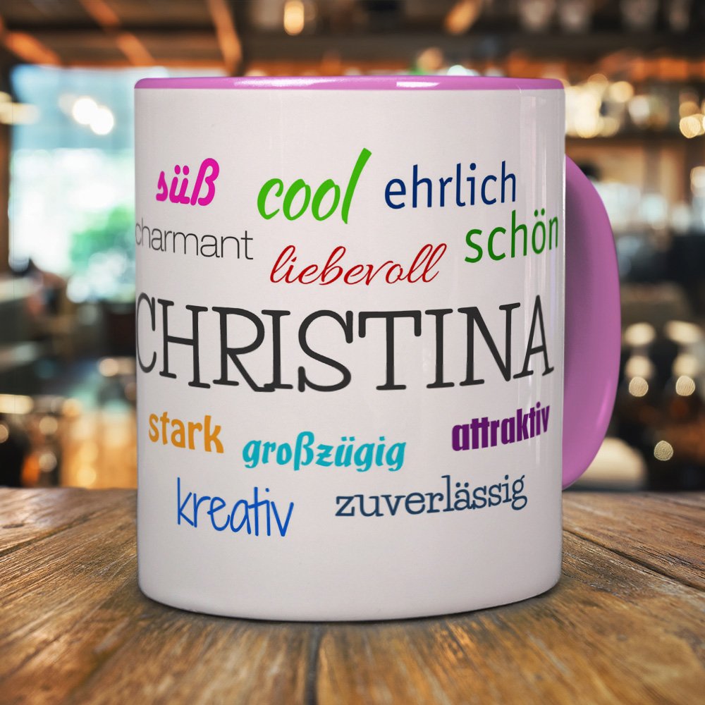 Printplanet Tasse Mit Namen Christina Positive Eigenschaften Tagcloud - Pink - Namenstasse, Kaffeebecher, Mug, Becher, Kaffeetasse