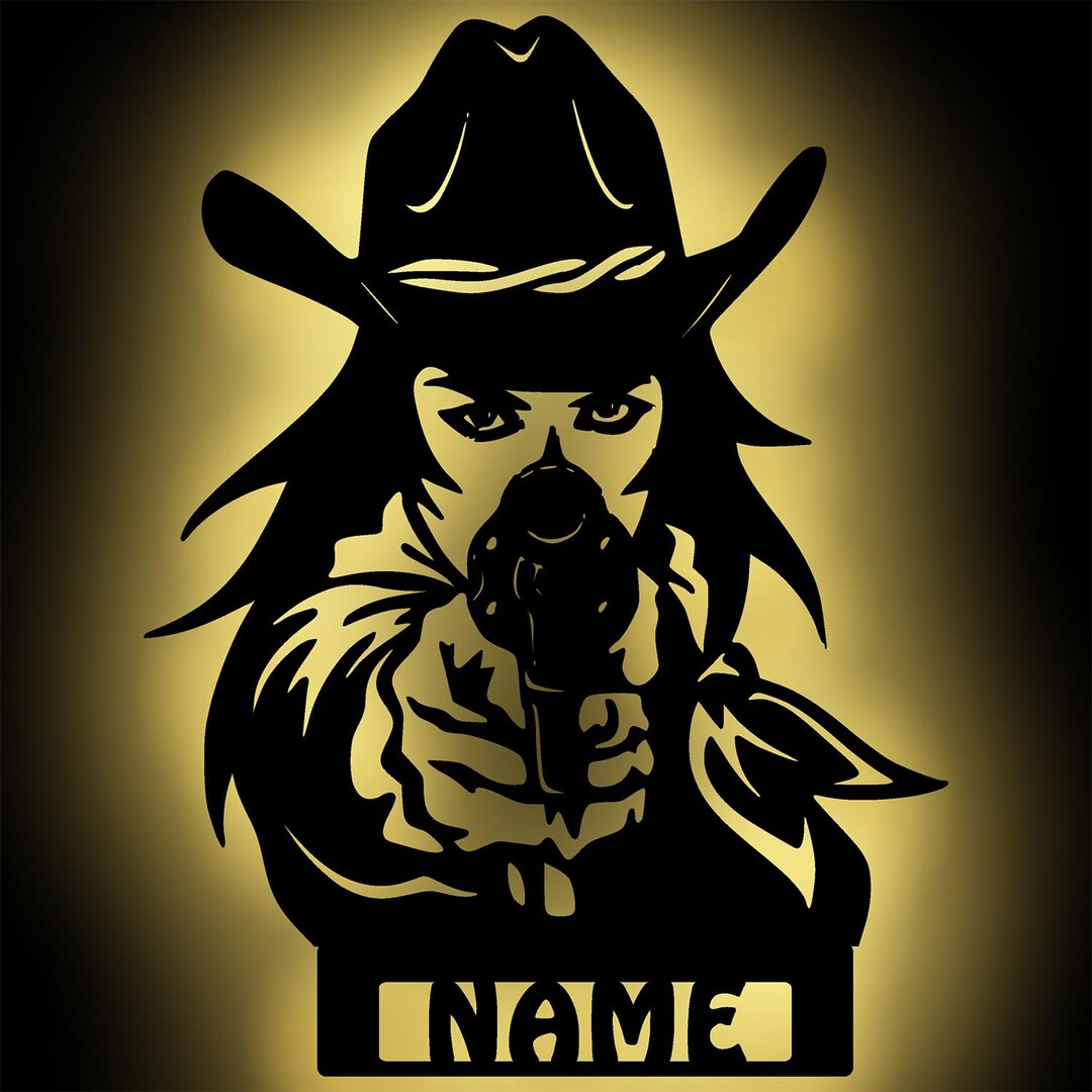 LED Cowgirl Wand Lampe Deko Licht Personalisiert Mit Namen I Geschenk Für Erwachsene Zum Geburtstag & Wilder Westen Fans I Batteriebetrieb