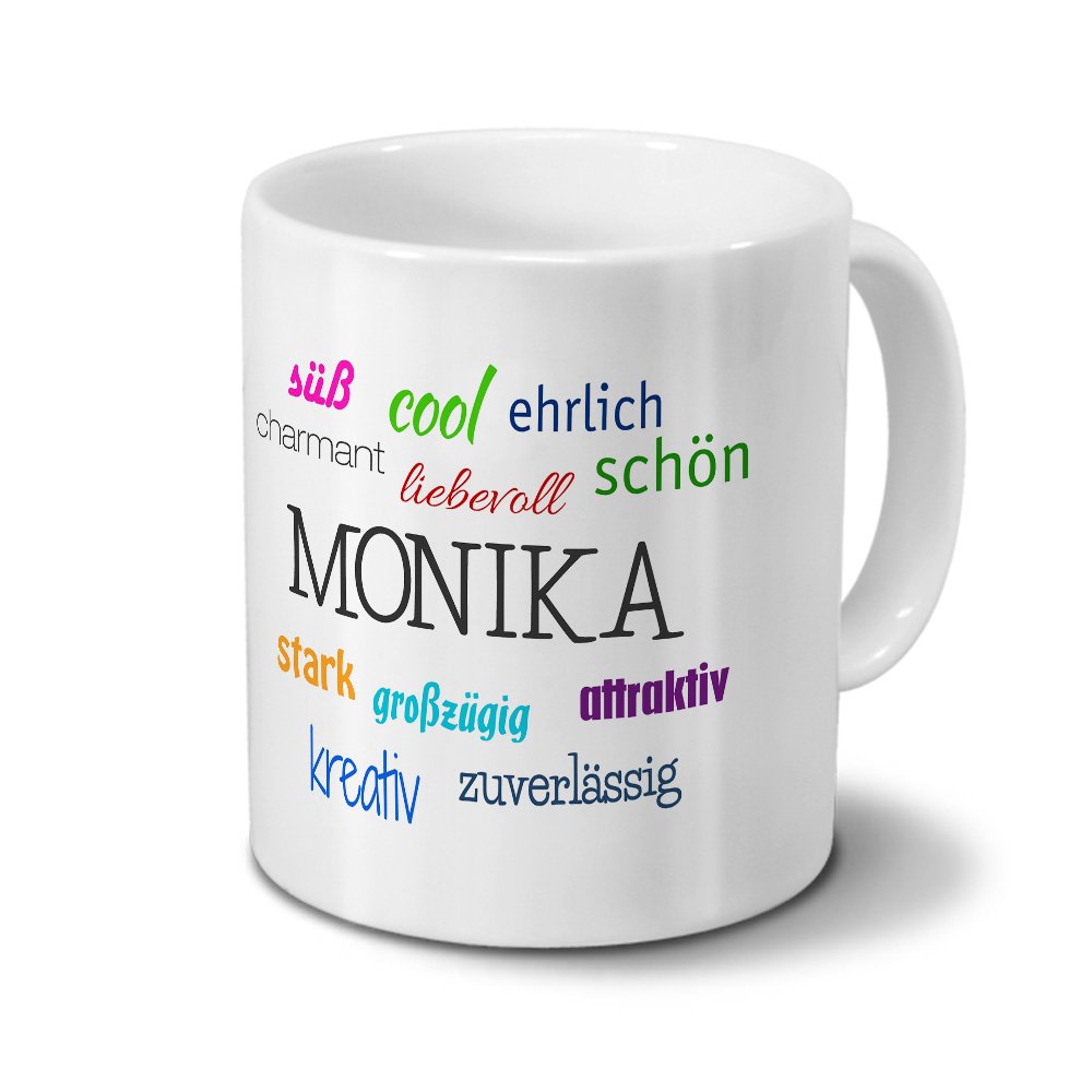 Printplanet Tasse Mit Namen Monika - Positive Eigenschaften Von Monika - Namenstasse, Kaffeebecher, Mug, Becher, Kaffeetasse - Farbe Weiß