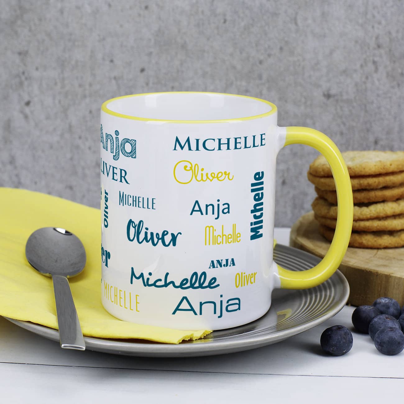 Tasse Mit Namen Veronica - Motiv Color Paint - Namenstasse Familien - Tasse mit gelbem Rand und drei verschiedenen Namen bedruckt Überrasche deine Liebsten zum Start in den Tag mit einem Kaffeebecher mit eigenem Namen. Ein ganz besonderer Kaffee/Tee-Genuss für zu Hause oder das Büro. Küchen- und Haushaltsartikel online - digital print Tasse mit Namen Veronika - Motiv Color Paint - Namenstasse, Kaffeebecher, Mug, Becher, Kaffeetasse - Farbe Weiß. digital print Tasse mit Namen Veronika - Motiv Color Paint - Namenstasse, Kaffeebecher, Mug, Becher, Kaffeetasse - Farbe Weiß extreme Haltbarkeit des Motivs durch Thermo-Transfer-Druck Die Tasse mit persönlichem Namen ist für die Spülmaschine geeignet und besteht aus kratzfestem Material. Material: hochwertiges Steingut (weiß lasiert), Henkel und Rand weiß , Maße: Höhe: ca., 9,5 cm; Durchmesser: 8 cm , 200 ml Füllvolumen