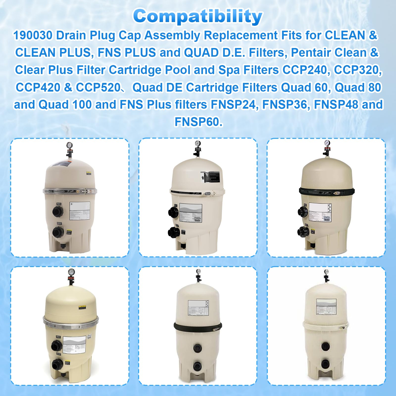 190030 Ablaufstopfen Kappe Mit O-Ring Montage Ersatz Für Pentair Clean & Clear Plus Kartusche Pool Und Spa Filter Modelle FNSP24, FNSP36, FNSP48, FNSP60 (2
