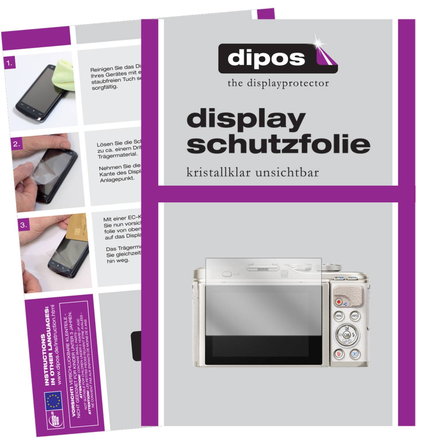 Die Haftung erfolgt komplett ohne Klebstoff und Adhäsion, dadurch lässt sich die Dipos Folie auch nach Jahren rückstandsfrei wieder entfernen, ohne während der Nutzung zu verrutschen., Hinweis! Produktbeschreibungen Passgenau für die Olympus OM-D E-M5, Original Dipos Antireflex Displayschutzfolie. Keine Beeinträchtigung der Bedienbarkeit! Die spezielle Silikon Haftschicht verdrängt die Luft beim Aufbringen und schmiegt sich damit von selbst an das Display an. Kinderleichte Anbringung - 100% blasenfreie Montage bei gereinigtem Display! Diese Folie ist mit einer speziellen Antireflex Beschichtung mattiert und damit ideal für all die jenigen, die gerne unterwegs sind. Die Kontur wurde an einer Original Olympus OM-D E-M5 konstruiert und bis ins kleinste Detail optimiert und mittels hochpräzisen Lasersystem zugeschnitten. Die spezielle Silikon Haftschicht verdrängt die Luft beim... Olympus Om-d Dipos I 6X Schutzfolie Klar Kompatibel Mit E M6 Folie Displayschutzfolie Kunststoff Die Dipos Antireflex Schutzfolie ist bestens geeignet, wenn Sie die Ablesbarkeit Ihres Displays unter ungünstigen Lichtverhältnissen (z., B. Dipos Schutzfolie Klar für Canon PowerShot V1 - kaufen bei Wenn Ihnen die Originaldisplay-Darstellung wichtiger ist als der Antireflex-Effekt, empfehlen wir die nahezu unsichtbare Dipos Crystalclear Displayschutzfolie als Alternative zu diesem Produkt. dipos is a Registered Trademark (HABM / OHIM No., 016053167). Die Kontur wurde an einer Original Olympus OM-D E-M5 konstruiert und bis ins kleinste Detail optimiert und mittels hochpräzisen Lasersystem zugeschnitten. Using the Trademark is a violation of law and therefore forbidden (§ 14(2) Markengesetz & Article 9(1) Gemeinschaftsmarkenverordnung)., Made in Germany! Die matte Anti-Spiegelfolie hat eine papier-ähnliche Oberfläche. Vergleichbar ist das mit einem Fotoabzug, den Sie matt oder glänzend bestellen können. Die Dipos Displayschutzfolie bietet ein angenehmes Bediengefühl und ist für die Olympus OM-D E-M5 Display optimiert. Vermindert störende Spiegelungen und Reflexionen auf dem Display. Sonnenstrahlen im Freien) verbessern möchten und Ihr Display vor Kratzern und Beschädigungen schützen möchten. Eine moderne Silikonhaftung sorgt dafür, dass sich die Folie von selbst an das Display anschmiegt und blasenfrei auftragen lässt.