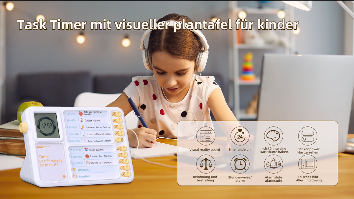 Unterstützt einen maximalen Countdown von 99 Minuten und 59 Sekunden. Ideal für die Verwaltung von Hausaufgaben und Leseaufgaben. Bei Nichtgebrauch dient es auch als stilvolle Schreibtischdekoration. Ob für Klassenzimmer-Aktivitäten, Hausaufgaben, Bildschirmzeitsteuerung oder tägliche Routinen, dieser Timer bietet eine klare und intuitive Möglichkeit, die Zeit zu verfolgen. Seine leichte und kompakte Bauweise macht es perfekt für Zuhause, Schule oder Therapie-Sitzungen. Der visuelle Timer von VEWINGL ist einfach einzurichten und zu verwenden und hilft dabei, ein besseres Zeitbewusstsein und unabhängige Zeitmanagementfähigkeiten aufzubauen. Leiser Betrieb: Der geräuschlose, nein: Tickmechanismus sorgt für eine ablenkungsfreie Umgebung, wodurch er ideal für fokussierte Aufgaben ist und Angst bei Zeitübergängen reduziert. Machen Sie das Zeitmanagement mühelos und ansprechend mit dem VEWINGL Visual Timer für Kinder. Entwickelt, um Kindern zu helfen, konzentriert und organisiert zu bleiben, verfügt dieser 99 minütige digitale Timer über eine Roboter Animations Countdown Anzeige, wodurch er sowohl lustig als auch leicht zu verstehen ist For Autism Online Visueller Timer Für Kinder Erwachsene, ADHS-Timer Mit Plantafel Für Zeitpläne, Aufgaben-Timer Kleinkind Visua Timer Schule Mit einstellbaren Einstellungen für Countdown-, Uhr- und Alarmfunktionen ist es ein ideales Werkzeug für Kinder mit Autismus, ADHS oder anderen Lernbedürfnissen. Multifunktionaler Timer, Uhr und Alarm: Mit intuitiven Steuerungen unterstützt dieser Timer Countdown-, Count-Up-, Uhr- und Alarmfunktionen und hilft Ihnen, die Zeit effizient zu verwalten. Time Timer Medium: Ein innovatives Werkzeug zur Zeitvisualisierung Einfach einzustellen und zu verwenden, verbessert es den Fokus und das Zeitbewusstsein. Time Timer® visualisiert die verbleibende Zeit klar und reduziert so den Stress beim Zeitmanagement – für Kinder, Erwachsene und neurodivergente Menschen in der Schule, zu Hause und am Arbeitsplatz