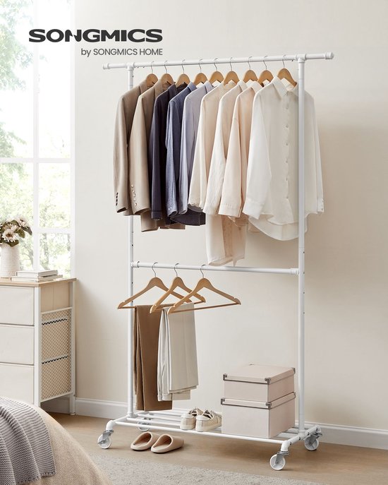 Kleiderständer Günstig Kaufen Kleiderständer Mit Rollen – Die 15 Besten Produkte Im Vergleich Kleiderständer MIT Ablage [3-in-1-Multifunktions-Design]: 3-in-1-Kleiderständer kombiniert eine Garderobe, ein Schuhregal und einen Kleiderständer in einer einfachen und vielseitigen Struktur, die perfekt in Schlafzimmer, Wohnzimmer, Waschküche, Diele integriert werden kann und auch als tragbarer Schrank/Kleiderschrank in Bekleidungsgeschäften, Miethäusern und Wohnungen verwendet werden kann. </p<p<bFahrbarer Kleidungsständer</b<brDank der 360° Rollen ist der Ständer leicht zu bewegen und kann frei stehend im Raum platziert werden. Erfüllen Sie Ihre vielfältigen Bedürfnisse. Sie können die Höhe der Regale entsprechend der Höhe Ihrer Kleidung/Boxen/Schuhe anpassen, halten Sie Ihr Zimmer ordentlich und organisiert. [Doppelter Stauraum] Die Kleiderständer zum Aufhängen von Kleidung haben 2 Kleiderstangen unterschiedlicher Höhe. 4 Haken an der Seite zum Aufhängen von Taschen, Hüten, Schlüsseln und anderen Gegenständen. LOEFME multifunktionale Kleiderstange, 110 x 55 x 150 cm, für Schlafzimmer, minimalistisches Design (Schwarz </p<p<bFlexibel anpassbar</b<brJede Stange ist höhenverstellbar, sodass Sie auch problemlos lange Mäntel oder Kleider aufhängen. Auf der Ablage können Sie Schuhe und Taschen abstellen. Kleiderständer 2 Stangen – Die 15 besten Produkte i Vergleich - WinTotal </p<p<bSolides Metallgestell</b<brDas Gestell besteht aus Edelstahlrohren, was den Garderobenständer stabil macht. [Tragbarer Kleiderständer] Der rollende Kleiderständer mit Rollen von 4 universellen, 2 davon sind feststellbar, Sie können das Rollgestell bewegen oder stillstehen, wie Sie möchten, so dass es einfach ist, zum Hof zu bewegen, um Ihre Kleidung zu trocknen, und wir bieten auch 4 verstellbare Füße, um Ihr Gleichgewicht auch auf unebenem Boden zu halten. Für einen sicheren Stand sind 2 der 4 Räder mit feststellbaren Bremsen ausgestattet. Visueller doppelter Stauraum für einfaches Sortieren und Weglegen der Kleidung Die geringe Stellfläche der Schrankregale zum Aufhängen von Kleidung kann den vertikalen Raum voll ausnutzen, also verabschieden Sie sich von der Mühe, Kleidung zu stapeln