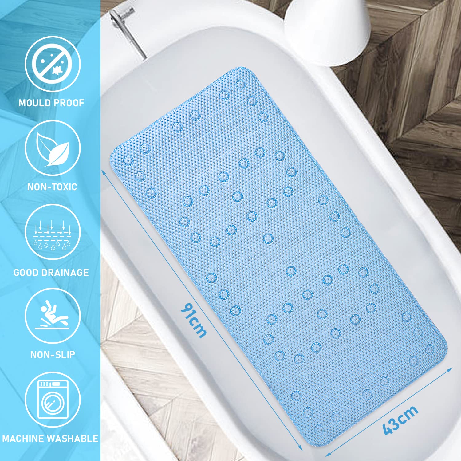 Rutschfeste Badewannen- Und Duschmatten Für Badewanne Mit Saugnäpfen, Abflusslöchern, Sicherheit Für Kinder Und ältere Menschen, 39 X 70 Cm