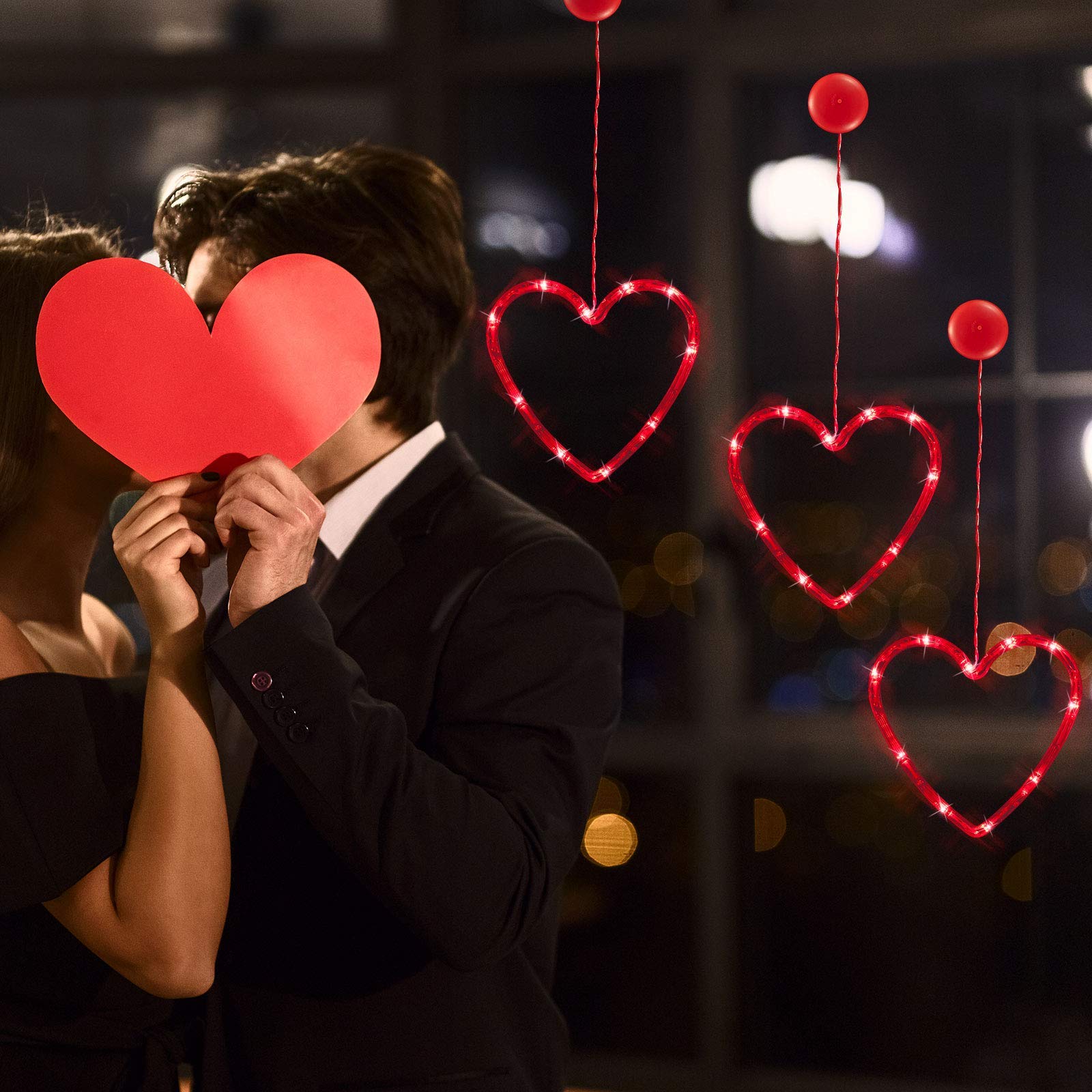 SOLUSTRE 3St. LED Herz Lichterkette Valentinstag Beleuchtung Mit Saugnapf Fensterlicht Nachtlicht Für Innen Hochzeit Geburtstag Party Dekoration Weihnachtsdeko Batteriebetriebene Ohne Akku