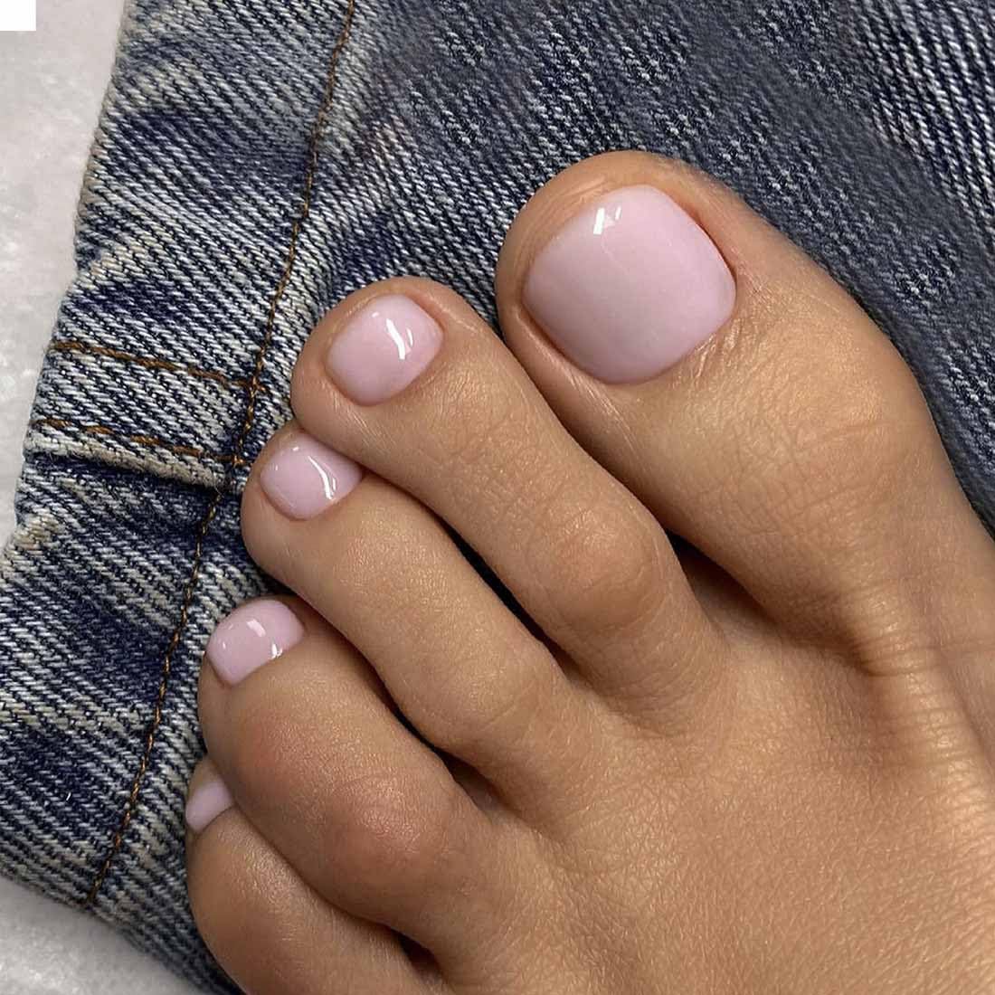 24 Stück Rosa Französische Künstliche Zehennägel Mit Schleifen-sign, Zum Aufdrücken Von Zehennägeln, Ins Sommer, Tragbar, Vollständige Abckung, Gefälschtes Zehennagel-Maniküre-Set