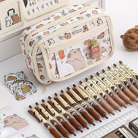 Produktmerkmale: Produktmaterial: PVC + Segeltuch. Produktgröße: ca. 210 x 55 x 145 mm. Produktliste: 1 x Federmäppchen. 1 x Geschenktasche Capy Bara Juvanovo Capybara Federmäppchen, Capybara Briefpapier Set, Capybara Mäppchen Mit Schulbedarf, Wasserschwein Federmäppchen Mit Großer Kapazität Und Fächern, Für Jungen Und Mädchen (8-Teiliges Set Capybara Federtasche 【Premium Quality】 Designed for long-lasting use, this big capacity pencil case boasts high-quality zippers that ensure smooth and easy opening and closing. 【Unordnung reduzieren】Das weite Öffnungsdesign ermöglicht Benutzern einen beispiellosen Komfort beim Entnehmen/Einlegen von Gegenständen, vereinfacht den Sortiervorgang und sorgt dafür, dass die Gegenstände schnell gefunden werden können. Kaufe 1 Set Federmäppchen-Set mit Bonus-Puppenaufklebern, wasserdicht, geräumig, mehrstufige Fächer, Federmäppchen, Capybara-Puppen-Federmäppchen zum Preis ab 6.2 Packungsinhalt: 1 Federmäppchen, 1 Capybara-Anhänger, 1 Capybara-Aufkleber (zufällig) Praktisch, stilvoll und mit Liebe zum Detail gestaltet So bleibt alles griffbereit und ordentlich – perfekt für Schule, Uni oder Büro 【Hochwertiges & langlebiges Material】Gefertigt aus strapazierfähigem Webstoff und ausgestattet mit robusten, leichtgängigen Reißverschlüssen, überzeugt das Mäppchen durch lange Lebensdauer und einfache Reinigung – ideal für den täglichen Einsatz 【Multifunktional einsetzbar】Ob als Federmäppchen, Kosmetiktasche oder Reiseetui – dieses vielseitige Täschchen ist ein praktischer Begleiter im Alltag, auf Reisen oder im Büro. Packungsinhalt: 1 Federmäppchen, 1 Capybara-Anhänger, 1 Capybara-Aufkleber (zufällig) Passendes Geschenk: Sehr gut geeignet als Einschulung geschenk 2025, auch als Geburtstagsgeschenk für Kinder geeignet. Mit Zubehör: Inklusive Capybara-Schlüsselanhänger, Broschen und Aufklebern für individuelle Gestaltung. Vielseitig einsetzbar: Perfekt für Schule, Freizeit, Reisen oder als Aufbewahrung für Bastelmaterial