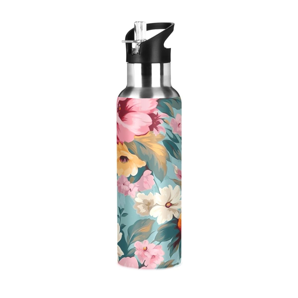 Hydrapeak Isolierte Wasserflasche Mit Strohhalmdeckel, Farblich Passende Kappe Und Gummistiefel, Vakuumisolierte Wasserflaschen Aus Edelstahl, Hält Getränke Für 24 Stunden Kalt (modernes Blau