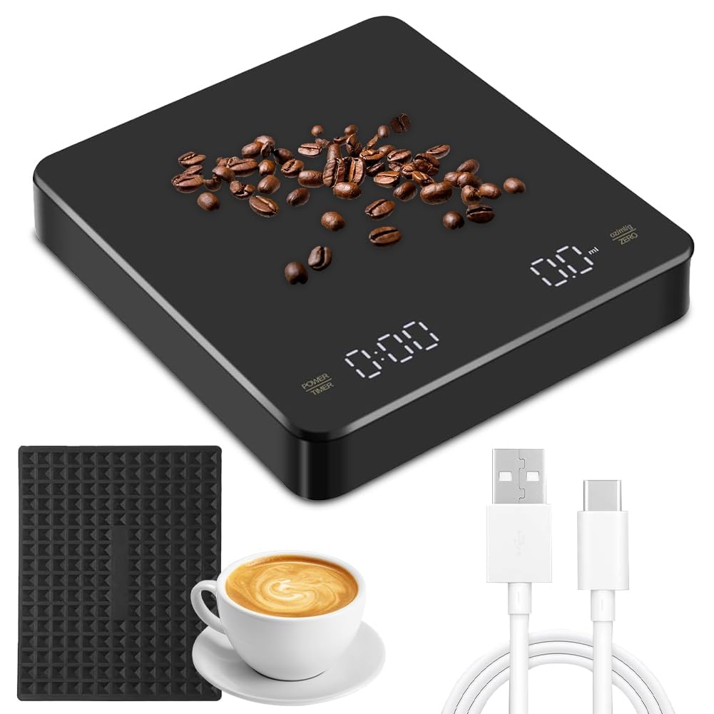 Küchenwaage, Digital Kaffeewaage Mit Timer 0,1g 5Kg 11 Lb Led Display