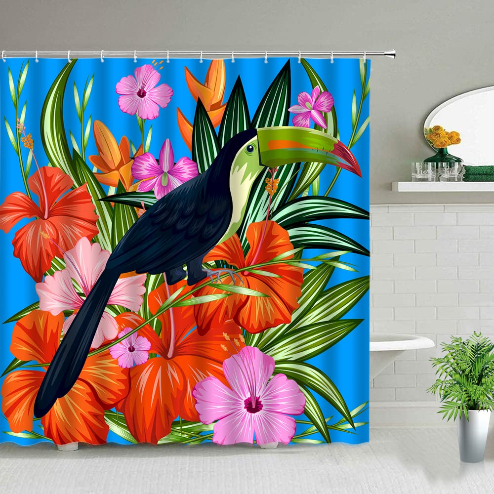 YSSFAV Duschvorhang Mit Tropischem Flamingo, Botanisches Aquarell