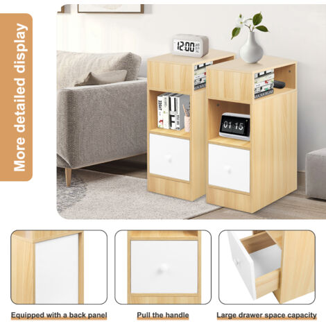Moderner MDF Holz Nachttisch Mit USB-Anschlüssen Schlafzimmer Aufbewahrung Schra