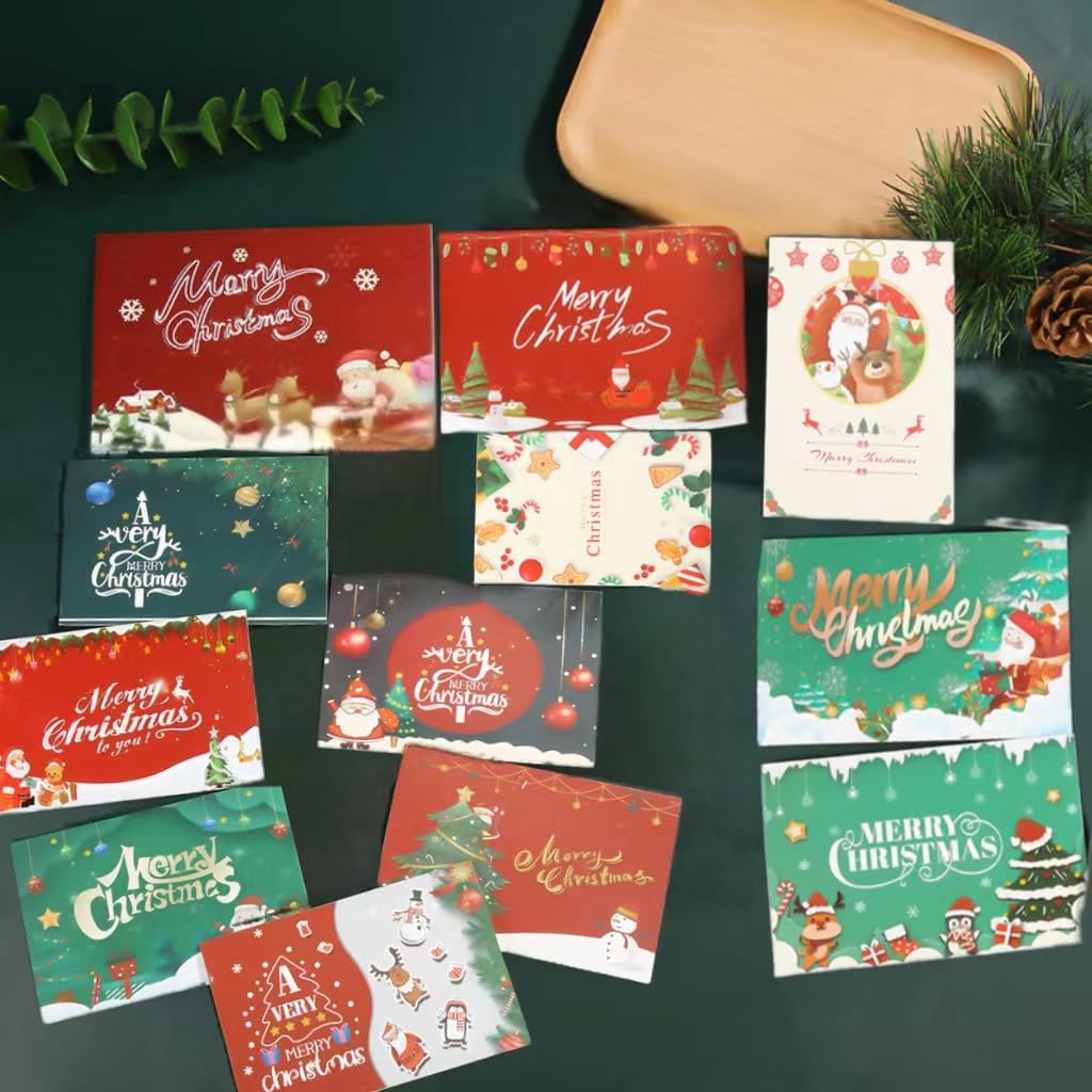 12 Weihnachtskarten Vintage Klappkarten Karten Mit Umschlägen Magie Der Weihnacht Karte Umschlag Frohe Weihnachten Merry Christmas Xmas Weihnachtskarte Weihnachtsmann Kinder Schnee Wald