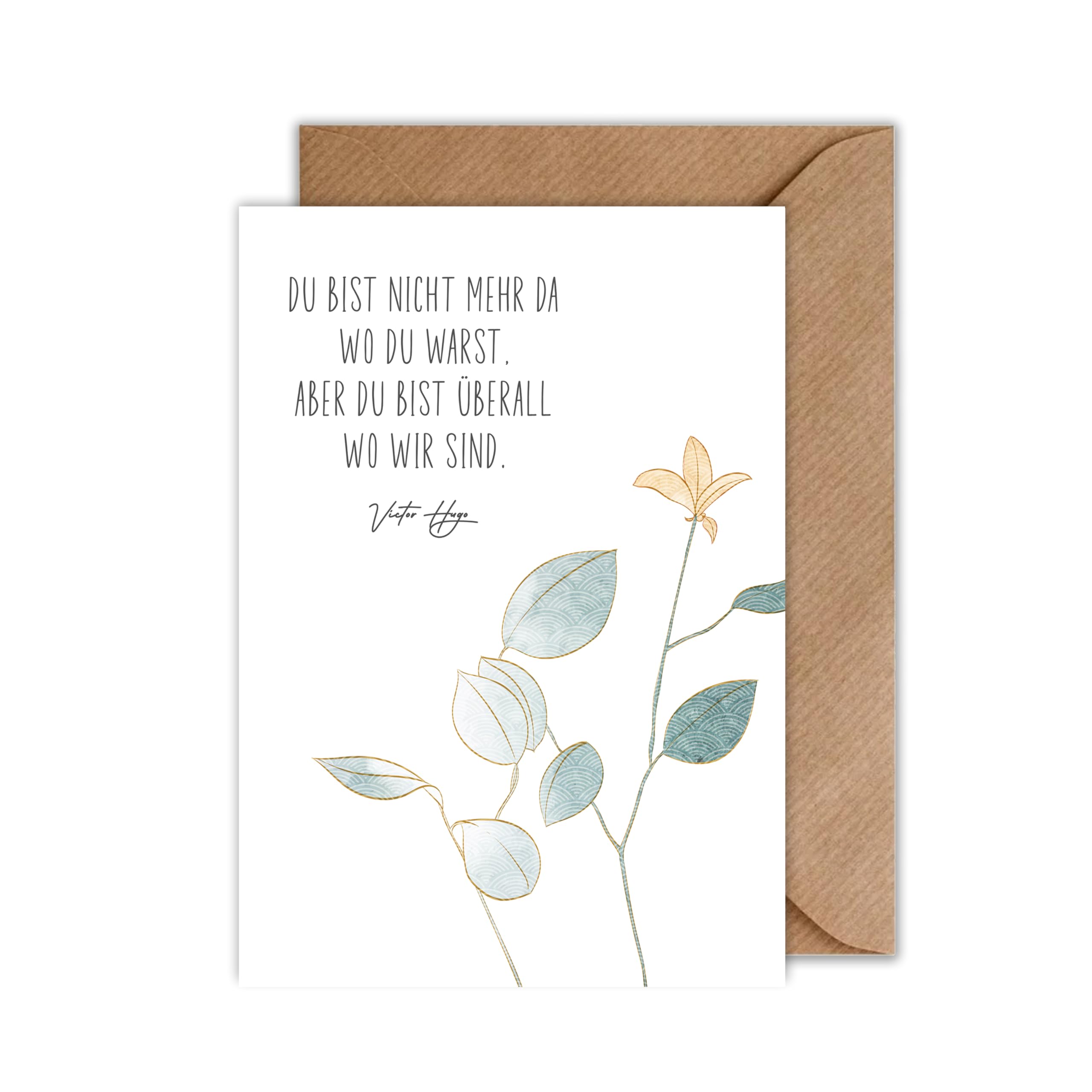 Dies unterstreicht die Bedeutung des Anlasses und die aufrichtige Anteilnahme des Absenders. Der sanfte graue Farbverlauf im Hintergrund fügt eine zusätzliche Ebene der Eleganz und Besinnlichkeit hinzu. Trauerkarten Mit Umschlag Beileidskarten Mit Umschlag WBdesignz Trauerkarte Mit Umschlag - Mohnblume Motiv Für Kondolenz & Beileid Danksagungskarten Trauer Mit ihrer subtilen Eleganz und ihrem einfühlsamen Design bietet diese Trauerkarte einen Weg, Trost zu spenden und gleichzeitig die Erinnerung an den Verstorbenen in Ehren zu halten. Emotionales und Elegantes Design: Die Trauerkarte zeichnet sich durch den Schriftzug Aufrichtige Anteilnahme aus, kombiniert mit der Darstellung einer Mohnblume, einem Symbol für Trost und Erinnerung. Gedruckt auf 300 g/m² Premiumpapier, bietet die Karte nicht nur eine visuelle Schönheit, sondern auch eine angenehme und wertige Haptik. Diese behutsam gestaltete Trauerkarte im DIN A6 Klappkartenformat ist ein stilvolles und taktvolles Mittel, um in Zeiten des Verlustes aufrichtige Anteilnahme auszudrücken. Hochwertige Materialqualität: Mit einem Druck auf 300 g/m² Premiumpapier bietet die Karte nicht nur eine hervorragende Bildqualität, sondern auch eine spürbar hochwertige Haptik. Natürlicher Kraftpapier-Umschlag: Jede Karte wird mit einem passenden Umschlag aus Kraftpapier geliefert, was die natürliche und aufrichtige Botschaft der Karte unterstreicht. Sie kann unmittelbar nach dem Bekanntwerden des Todesfalls, während der Trauerfeier oder an Jahrestagen versendet werden. Vielseitige Verwendungsmöglichkeiten: Diese Trauerkarte eignet sich für den Ausdruck von Mitgefühl und Anteilnahme bei einem Todesfall im Familien-, Freundes- oder Kollegenkreis. Diese elegante Trauerkarte ist ideal für all jene, die ihren aufrichtigen Beileid auf eine stilvolle und zugleich schlichte Weise ausdrücken möchten. Sie eignet sich hervorragend für Trauerfälle und kann an Freunde, Familienmitglieder oder Kollegen verschickt werden, um Trost und Mitgefühl zu spenden Sie bietet eine respektvolle und einfühlsame Art, Beileid zu bekunden – sei es unmittelbar nach dem Bekanntwerden des Todesfalls, während der Trauerfeierlichkeiten oder auch als eine Geste des Gedenkens zu einem späteren Zeitpunkt. Diese Trauerkarte ist in Deutschland designt und hergestellt. Hochwertige und geschmackvolle Trauerkarte aus Holz mit dezenter Gravur einer Pusteblume und simplem Text Herzliches Beileid . Karte für Trauer, Beerdigung, Begräbnis, Sterbefall und Todesfall Diese Trauerkarte eignet sich hervorragend für Personen, die ihre tiefe Anteilnahme und Mitgefühl bei einem Todesfall im Familien-, Freundes- oder Kollegenkreis ausdrücken möchten.