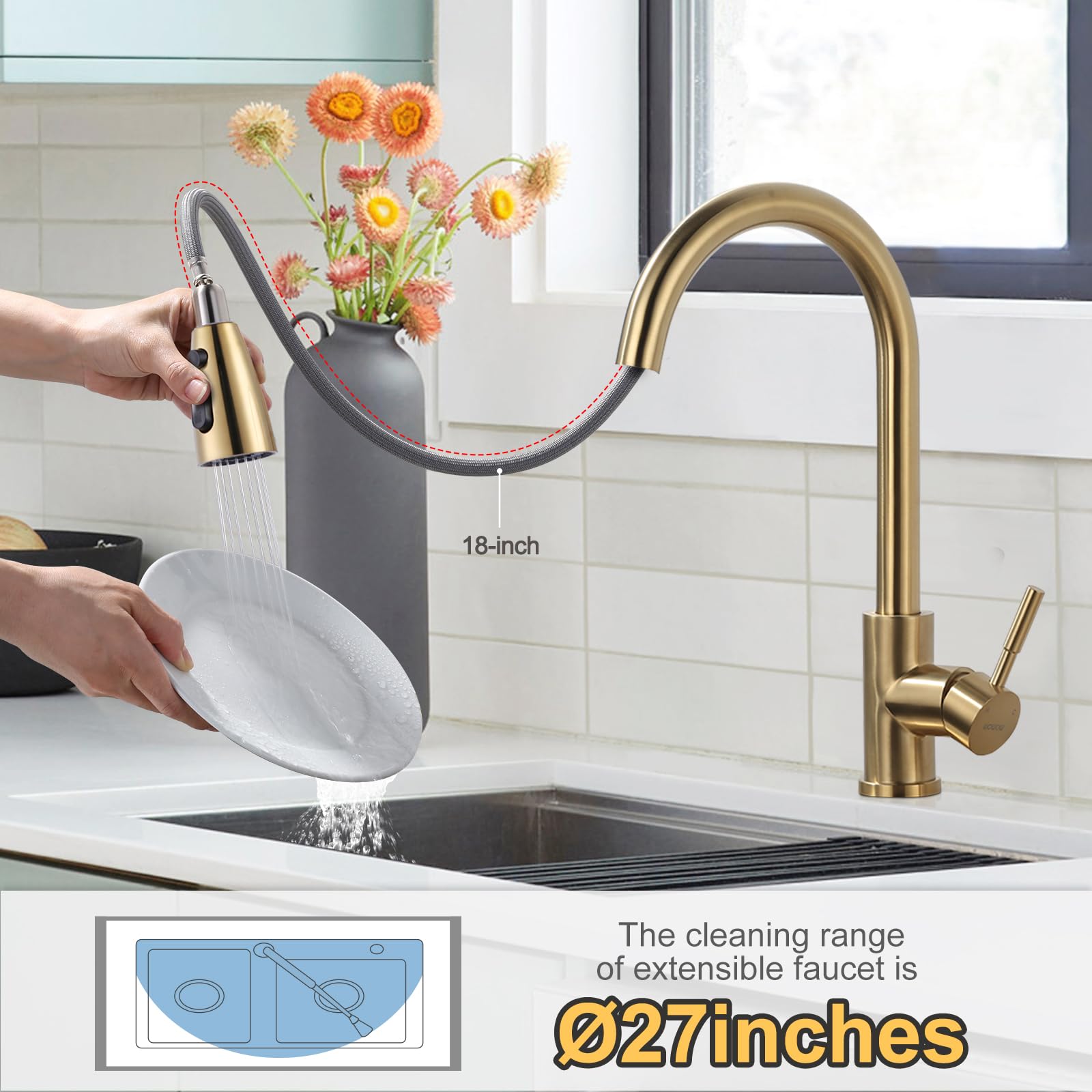 【Praktisches Design】Der 360° schwenkbare Wasserhahn mit hohem Bogen bietet genug Platz für jede Küchenaufgabe – Reinigung, Befüllen usw. ABS-Luftsprudler sorgt für einen gleichmäßigen Wasserfluss., Hochwertige ABS-Düse. Messing Küchenspüle Wasserhahn mit mattschwarzem Finish ist rostfrei, korrosionsbeständig, auslaufsicher und sorgt für Wassersicherheit und eine lange Lebensdauer. Auralum Max Edelstahlspüle 60 x 45 cm Küchenspüle + 2 Strahlarten... Einzelgriff für einfache Kontrolle. Stream-Modus zum Befüllen großer Töpfe und Pfannen in Minuten. Der Vorspülsprüher bleibt mit einem Druck des Schnallengriffs auf, sodass Sie ihn nicht immer halten müssen. WOWOW Kommerzielle Küchenarmatur Mit Vorspülsprüher, 71.1 Cm Höhe Zwei separate Ausgießer. Vorfenster Küchenarmatur Klappbar, mit 2 Strahlarten, Armatur Vorfenstermontage Moderner Stil passt für kommerzielle Restaurants, Häuser, Hotels, Wohnungen und so weiter. Wir liefern Ihnen eine ausführliche Anleitung (evtl. Sanfte Berührung mit den Fingern, um Kalkablagerungen und Kalzium zu entfernen. 2 Wassermodi: Der Sprühkopf mit Vorspülen bietet ein leistungsstarkes Hochdruck-Spray zum Entfernen von Speiseresten, er kann mit nur einem Druck des Griffs geöffnet bleiben und es muss nicht gehalten werden. Solide Messing-Konstruktion: Der robuste Topffüller ist aus hochwertigem massivem Messing gefertigt und wiegt 2,5 kg. Leicht zu reinigen, hält die Nutzungsdauer und den Wasserstandard. Wenn Sie mit irgendwelchen Fragen unglücklich sind, können Sie sich gerne an uns wenden.