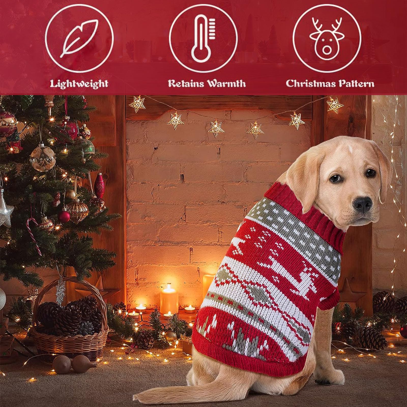 XXL: Körperlänge: 51 cm, Brustumfang: 68 cm, Halsumfang: 40 cm. Vehomy Weihnachtspullover für Hunde, Strickwaren, Pullover mit Rentieren und Schneeflocken für kleine und mittelgroße Hunde Bitte messen Sie Ihre Haustiere genau und beachten Sie die Größentabelle vor dem Kauf, um Größenprobleme zu vermeiden, die zu Rücksendungen führen können. Es ist eine großartige Sache, Ihren Hund Familienfotos mit Ihnen in dieser Haustier-Weihnachtskleidung machen zu lassen. Geeignet für viele Anlässe: Die Weihnachts-Strickwaren für Jungen und Mädchen oder Katzen geeignet. Darüber hinaus ermöglicht der hoch geschnittene Bauch bequeme Pausen für das Haustier. Hunde Pullover Kleine Hund Stoff Mit Weihnachtsbäumen Und Goldenen Schneeflocken | Festliche Weihnachtskostüm Hund 7 Größen erhältlich: Die Weihnachts-Hunde-Strickware ist für kleine, mittelgroße und große Hunde geeignet. Größe 3XL: Körperlänge: 60 cm, Brustumfang - Wenn Sie den Halsumfang und den Brustumfang Ihres Haustieres messen, lassen Sie bitte ausreichend Platz, um zwei Finger zwischen das Maßband und den Körper Ihres Hundes zu schieben. Geeignet für viele Anlässe: Die Weihnachts-Strickwaren für Jungen und Mädchen oder Katzen geeignet. Es ist so cool, dass ein Hund oder eine Katze im niedlichen fliegenden Elchkostüm mit Segen von Frohe Weihnachten im Urlaub spazieren geht Es ist mit Elchen, Schneeflocken, Weihnachtsbäumen, Glocken auf der Rückseite gestrickt. Die Merry Christmas, zwei fliegende Elche, Schneeflocken, Weihnachtsbäume und Glocken auf der Rückseite der Welpenkleidung sorgen für eine festliche Atmosphäre. Größeninformationen: S: Körperlänge: 25 cm, Brustumfang: 32 cm, Halsumfang: 22 cm. Es wäre ein warmes Geschenk für Ihre Haustiere bei kaltem Wetter. Sein Pullover-Design mit ärmellosen Armen erleichtert das An- und Ausziehen, genau wie menschliche Kleidung. Produktmerkmale: Weiches Material: Der Weihnachtspullover für Welpen ist aus weichem Acrylgarn, warm, bequem und dehnbar. geschäftliche Weihnachts E-Card • Weihnachtskarte mit Elchen Sowohl Maschinen- als auch Handwäsche sind verfügbar. Wenn die Maße zwischen zwei Größen liegen, wählen Sie bitte die größere Größe. M: Körperlänge: 30 cm, Brustumfang: 38 cm, Halsumfang: 26 cm.