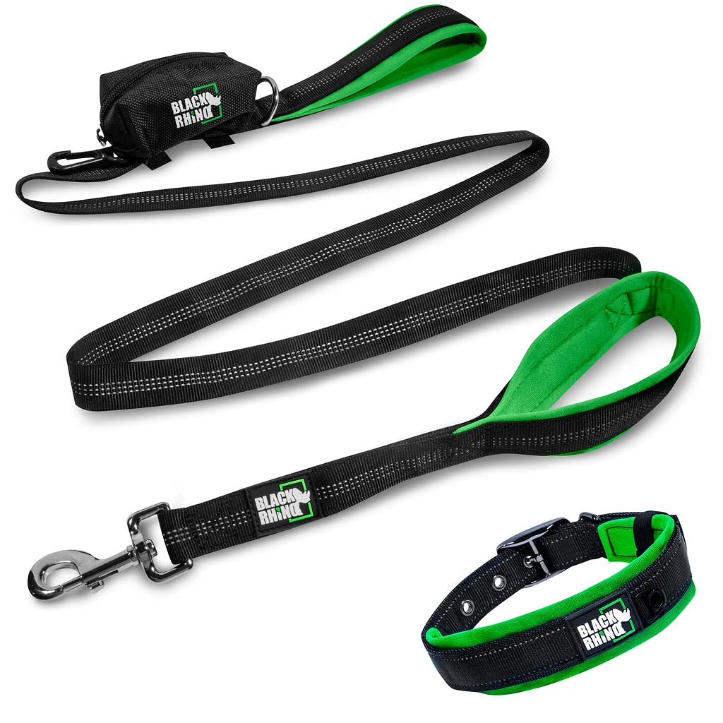 Black Rhino Hundeleine- Mittlere Und Große Hunde | 6ft Lange Leinen | Zwei Verkehrsgepolsterte Komfortgriffe Für Das Sicherheitskontrolltraining - Reflektierendes Blei Mit Doppelgriff (Grün