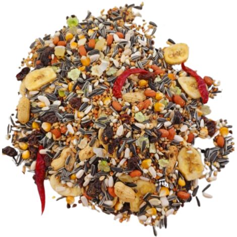 Fütterungsempfehlung:2 EL für die nicht ganz so aktiven Papageien pro Tag3 EL für die aktiveren Papageien pro Tag Haltbarkeit: 6 Monate nach Versand Hersteller: Original-Leckerlies / Made in Germany Inhaltsstoffe / Zutaten Geschälte Saaten (Bio-Weizen, Bio-Gerste, Bio-Roggen, Bio-Hafer, Bio-Sonnenblumenkerne, Bio-Kürbiskerne), Mango, Ebereschen, Kokosnuss, Holunderbeeren, Orangenblüten, Rosinen, Ohne Pellets! Zur Abwechslung freut er sich natürlich auch über die Papageien-Leckerlies von Original-Leckerlies. Wir verwenden fast nur geschälte Saaten - denn die Schimmelpilzsporen (Aspergilloserisiko) werden beim Knacken der Schale aufgewirbelt und können dann von Ihrem Liebling eingeatmet werden. Zusammensetzung Exotic-Mango-Mix:Geschälte Saaten (Bio-Weizen, Bio-Gerste, Bio-Roggen, Bio-Hafer, Bio-Sonnenblumenkerne, Bio-Kürbiskerne), Mango, Ebereschen, Kokosnuss, Holunderbeeren, Orangenblüten, Rosinen Sollte Ihr Papagei die ein oder andere Leckerei nicht so mögen, dann sprechen Sie mit uns. Dieser abwechslungsreiche Futtermix dient als Nahrungsgrundlage und besteht zu 100% aus Zutaten aus kontrolliertem Anbau oder Lebensmittelqualität. Dafür mit geschälten Saaten (Bio-Weizen, Bio-Gerste, Bio-Roggen, Bio-Hafer, Bio-Sonnenblumenkerne, Bio-Kürbiskerne), Mango, Ebereschen, Kokosnuss, Holunderbeeren, Orangenblüten, Rosinen Produktbeschreibungen Das Exotic-Mango-Basisfutter von Original-Leckerlies wurde eigens für Ihre Lieblinge kreiert. Kokosnuss Vogelfutter Original-Leckerlies: Exotic-Mango-Mix 1 Kg, ***Premium Qualität Vogelfutter Sonnenblumenkerne en Das Exotic-Mango-Basisfutter von Original-Leckerlies wurde eigens für Ihre Lieblinge kreiert. Dieser abwechslungsreiche Futtermix dient als Nahrungsgrundlage und besteht zu 100% aus Zutaten aus kontrolliertem Anbau oder Lebensmittelqualität Papageien haben aber trotzdem freude an den geschälten Saaten, denn sie versuchen die bereits entspelzten Körner noch einmal zu schälen. Dafür mit geschälten Saaten (Bio-Weizen, Bio-Gerste, Bio-Roggen, Bio-Hafer, Bio-Sonnenblumenkerne, Bio-Kürbiskerne), Mango, Ebereschen, Kokosnuss, Holunderbeeren, Orangenblüten, Rosinen Einsatz von geschälten Saaten um das Aspergilloserisiko möglichst gering zu halten! Panto Ziervogelfutter, Großsittich- und Papageienfutter 1 kg, 5er Pack