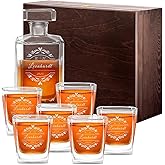 Lassen Sie sich von passenden Glückwünschen oder Sprüchen inspirieren, die in unserem Angebot zu Ihrer Verfügung stehen. Wir empfehlen das Set mit wenig Spülmittel mit der Hand zu waschen, da durch die Spülmaschine das Glas und die Gravur matt werden können. Die originelle Glasstruktur hebt die schlichte Eleganz des Whisky-Sets hervor und in Verbindung mit der persönlichen Gravur wird es zu einem zu einem exzellenten aber zugleich praktischen Geschenk für lange Zeit! Es ist ideal für Whiskey, Scotch, Bourbon, Rum oder Cognac. PRAKTISCH: Die Whiskykaraffe ist mit einem luftdichten Verschluss ausgestattet, der dafür sorgt, dass der Whiskey nicht mit der Umgebungsluft reagiert. Mit individuell gravierten Gläsern können Sie auf ganz besondere Ereignisse anstoßen. Relaxdays Whisky Set, Whiskykaraffe 1 Liter, 2 Whiskygläser 200 ml 60 Geburtstag Mann Maverton 950 Ml Whiskey Karaffe + 2/4 / 6er Whiskygläser Set Mit Gravur - Whisky Dekanter - Luxuriöses Design - Kristallglas - Für Männer Zum Geburtstag - Trauzeuge Whisky Karaffe Kaufen Fassungsvermögen der Karaffe: ca. 800 ml Das Whiskey Dekanter Set eignet sich ideal als Geschenk vor allem z.B.zum 18., 20., 30., 40., 50., 60 Es eignet sich ideal als Geschenk für verschiedenste Anlässe z., B. ELEGANZ: Die Whiskykaraffe sowie die im Set enthaltenen 4 Whiskygläser überzeugen mit schlichtem Schliff, eckigem Design, ihrer ansprechenden Ästhetik und der hochwertigen Verarbeitung. Die originelle Glasstruktur hebt die schlichte Eleganz des Whisky-Sets hervor und in Verbindung mit der persönlichen Gravur wird es ein hervorragendes, zugleich praktisches Geschenk für lange Zeit! Das auffallende Set sorgt für einen hervorragenden Whiskygenuss PROFESSIONELLE LASERGRAVUR: um dem Geschenkset einen individuellen Charakter zu verleihen, können Sie das Whisky-Set mit Ihrem Wunschtext gravieren lassen. Maverton 950 ml Whiskykaraffe + 2/4 / 6er Whisky Gläser Set mit Gravur - Whiskey Dekanter - luxuriöses Design - Kristallglas - für Männer zum