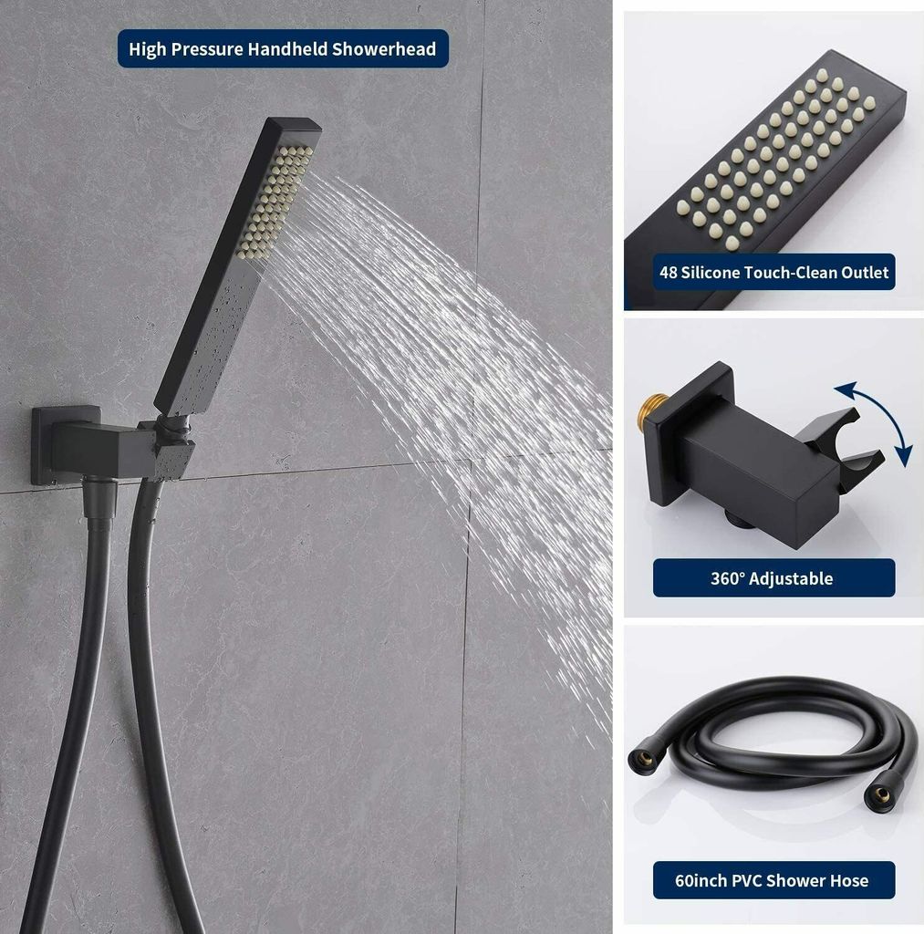 Hinweis: Wenn Sie aus irgendeinem Grund mit unserem Regenduscharmatur nicht zufrieden sind, lassen Sie es uns bitte wissen und wir werden Ihnen innerhalb von 24 Stunden eine zufriedenstellende Antwort geben Rehomthy Duschsystem mit Duscharmatur Schwarz, Regendusche mit Armatur, Duschamaturenset inkl Mischbatterie Dusche, Kopfbrause, Handbrause, Brausestange, HöHenverstellbar, Quadrat 25,4 cm Duscharmatur-Set Hochdruck-Mattel Schwarz Duschsystem Quadratischer Regenduschkopf Handbrause Wasserfall Regendusche Combo Set Badezimmer Wandmontage 【Verstellbarer Regenduschkopf und Multifunktions-Duschsystem】 Der 25,4 cm ultradünne Regenduschkopf und der Handbrause können flexibel eingestellt werden. Die Innenseite ist 100% H59 Messing Kupferkern, der niemals rostet 【Qualitäts-Duscharmatur-Sets】 Dieses elegante mattschwarze fertige Duschsystem eignet sich für verschiedene Stile Badezimmer, die Düse am Regenduschkopf, aus Silikon, ist leicht zu reinigen. Auralum Duschsystem mit Thermostat, Schwarz Duschset 2 Funktionen 25 x 25 cm Regendusche inkl. Kopfbrause, Handbrause, verstellbarer Duschstange, Duscharmatur Dusche Duschgarnitur Duschsäule Duscharmatur Komplettset Schwarz Duschsystem Mod. Quadro Schwarz Matt, Mit Regendusche Und Handbrause Kaufen Duscharmatur Schwarz Das Ventil besteht aus robustem Messing für dauerhaften Schutz für das Duschleben Ihrer Familie zu Hause Alon Duscharmatur CR6004-7GG (set, 1-St., Armatur mt Handbrause...