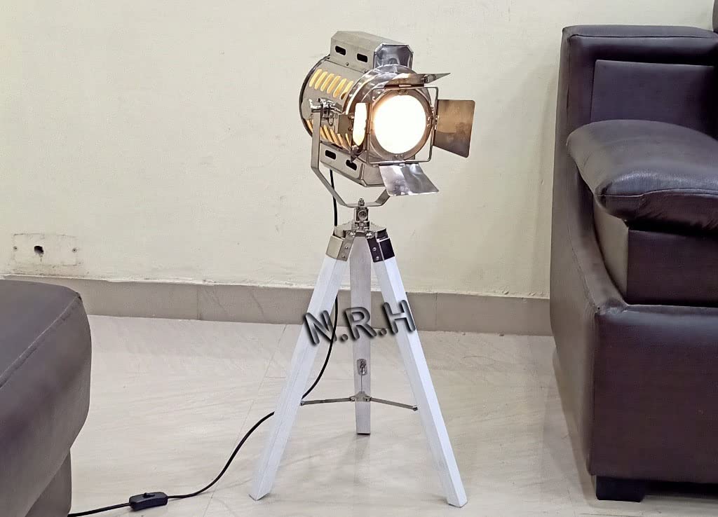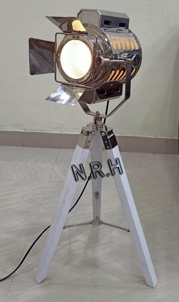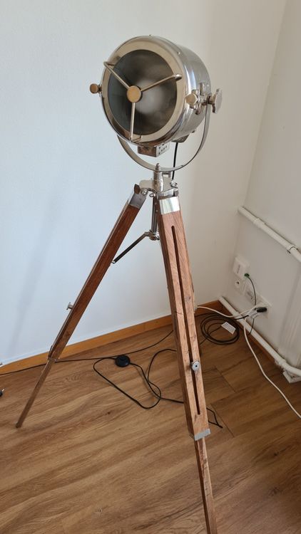 Nautische Stativ-Stehlampe Zeitgenössische Moderne Teakholzfassung Für Rustikale Dekoration, Kino-Beleuchtung, Retro-Strahler