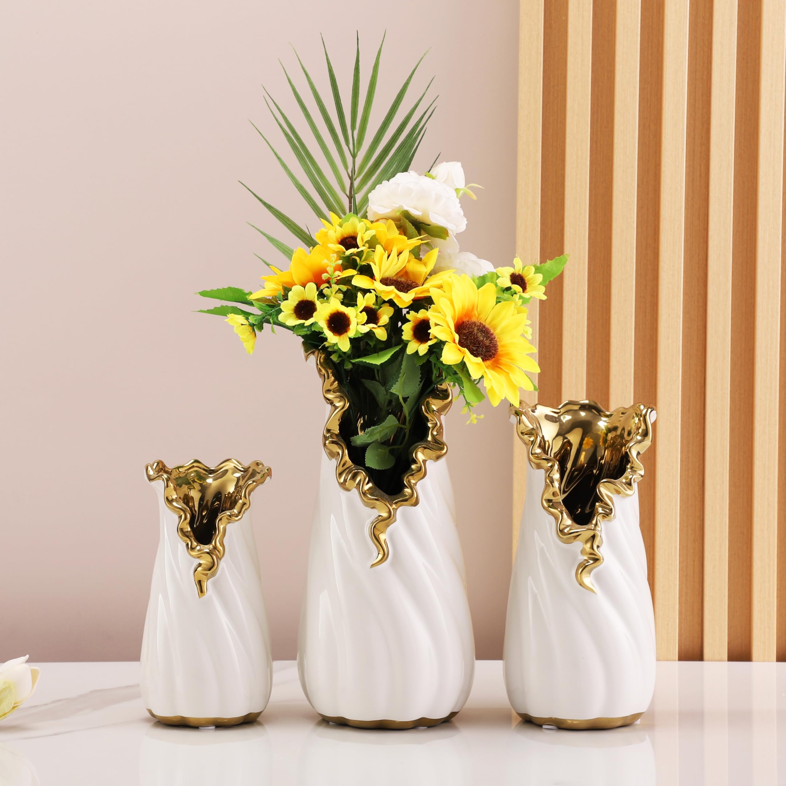 Moderne Weiße Und Goldene Vase, Heimdekoration, Hydrokultur-Blumentisch, Keramikvase, Dekorative Hohe Zylindervase Mit Ausgestelltem Rand, Heimdekoration, Wohnzimmer, Schlafzimmer, Hochzeit, Party