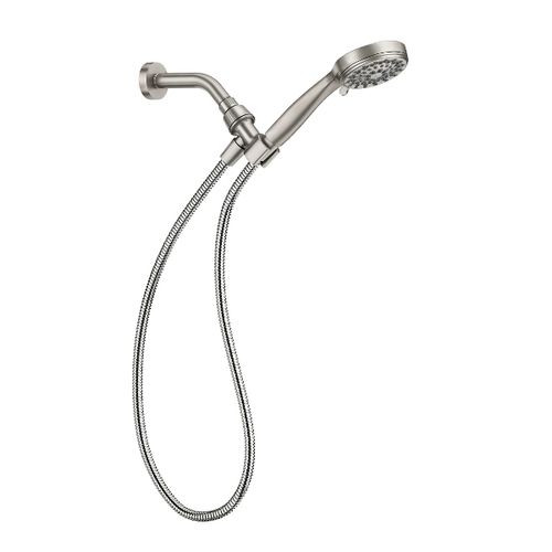 Verwandeln Sie Ihre tägliche Duschroutine in ein luxuriöses Spa-ähnliches Erlebnis mit dem Moen Ignite Standard-Sprühkopf mit 3/4-Durchmesser und Handbrause aus gebürstetem Nickel Flexibel: Verfügt über einen knickfreien 152,4 cm langen Metallschlauch, der Reichweite und Flexibilität erweitert Von einem kraftvollen Hochdruckspray, das revitalisiert und energetisiert, bis hin zu einer beruhigenden Ganzkörperspülung, die Sie sanft in Wärme umhüllt, sorgt dieser vielseitige Duschkopf dafür, dass jede Dusche ein individueller Rückzugsort ist. Vielfalt: Breite Abdeckung mit fünf Funktionen, Regenguss, Massage, die Sprühfunktion bietet eine weiche und dennoch schwere Spülung, die perfekt zum Baden von Kindern oder Haustieren ist Verwandeln Sie Ihre tägliche Duschroutine in ein luxuriöses Spa-ähnliches Erlebnis mit dem Moen Ignite Standard-Sprühkopf mit 3/4-Durchmesser und Handbrause aus gebürstetem Nickel. Das abnehmbare Duschkopf-Design, komplett mit einem flexiblen Brauseschlauch, bietet zusätzlichen Komfort und Flexibilität, so dass es einfach ist, schwer zugängliche Stellen zu erreichen oder nach einem entspannenden Bad in der Badewanne abzuspülen. Dieser Premium-Duschkopf wurde entwickelt, um ein belebendes und anpassbares Duscherlebnis zu bieten, was ihn zur perfekten Ergänzung für jedes moderne Badezimmer macht. Langlebig: Mit eingeschränkter lebenslanger Garantie von Moen Handheld Combo Moen 20016SRN Ignite Multi Function Shower Head And Hand Shower Shower Filter Moen 20016 Ignite Multi Function Shower Head and Hand Shower with Shower Arm Holder and Diverter. Moen 20016 Features Moen 20016 Specifications Multi function hand shower. Five function shower head Abdeckung: 9,5 cm Durchmesser Sprühkopf Duschkopf mit Handbrause